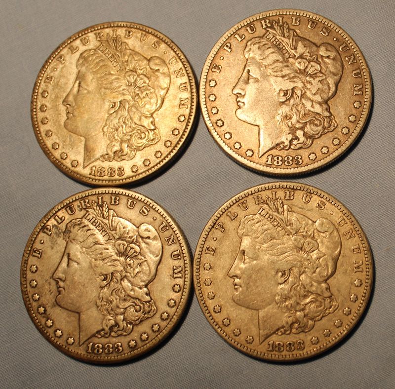 Four 1883 Morgan Silver Dollars (three "S"). Shipping is available for this item.