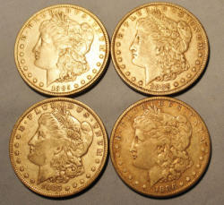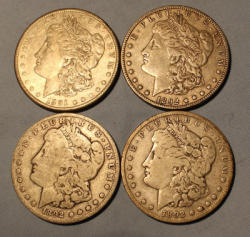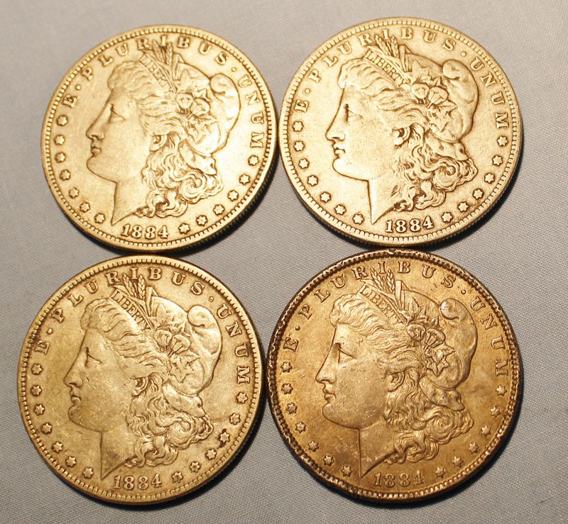 Four 1884 Morgan Silver Dollars (two "S"). Shipping is available for this item.