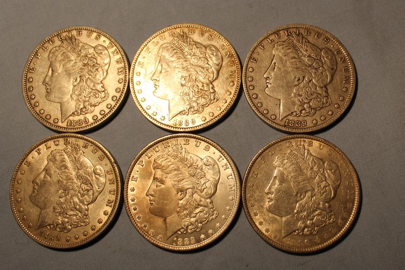 Six Morgan Silver Dollars including five 1889 (four "O") and an 1890. Shipping is available for this item.