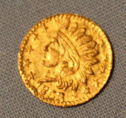 Small 1853 California gold token. Weighs .257 grams. Shipping is available for this item.