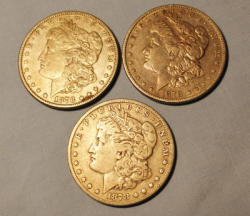 Three 1878 Morgan Silver Dollars including two "S". Shipping is available for this item.