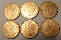 Six Morgan Silver Dollars including three 1880 (one "O") and three 1881 (one "S" and two "O"). Shipping is available for this item.