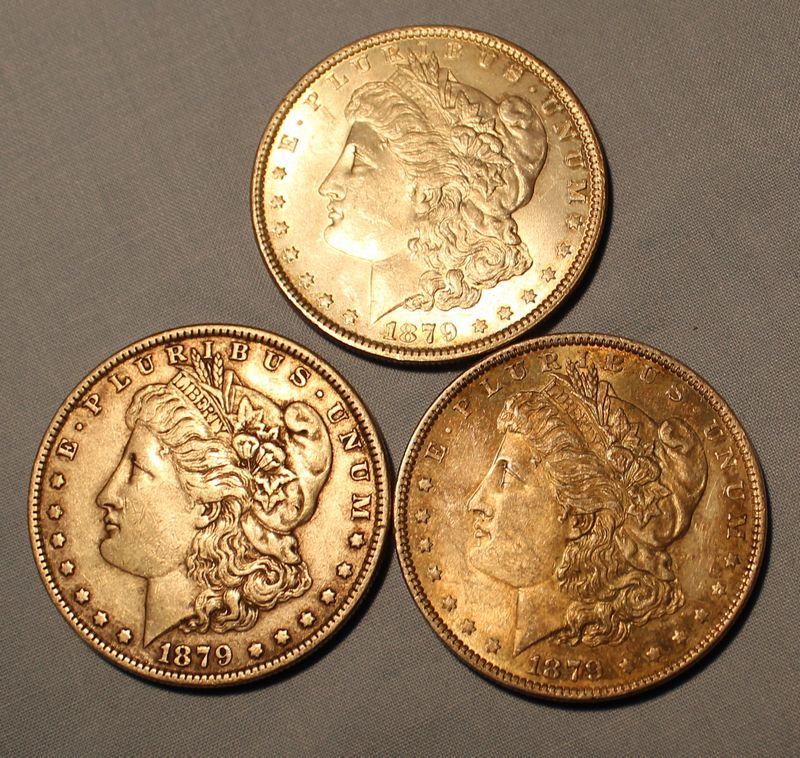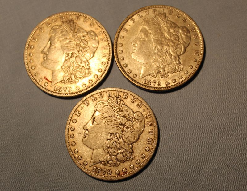 Six 1879 Morgan Silver Dollars including three "O". Shipping is available for this item.