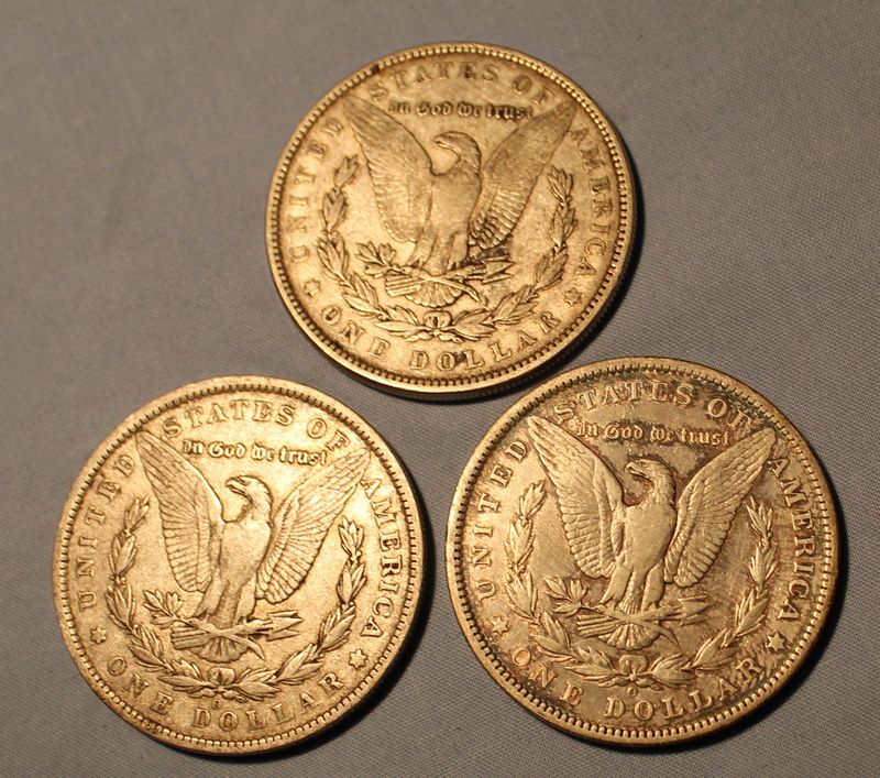 Six Morgan Silver Dollars including three 1887 (two "O") and three 1888 (one "O"). Shipping is available for this item.