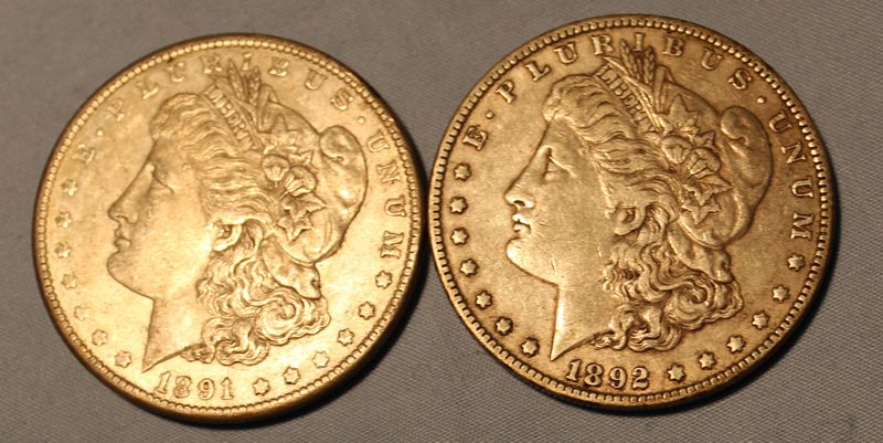 Four Morgan Silver Dollars including one 1891 and three 1892 (two "O"). Shipping is available for this item.