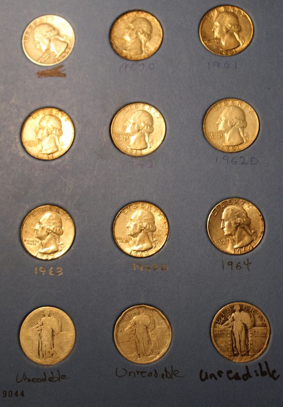 24 silver U.S. quarters including 14 Standing Liberty quarters and 10 Washington quarters (all dated 1964 or earlier). Shipping is available for this item.