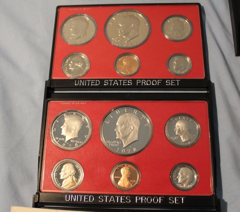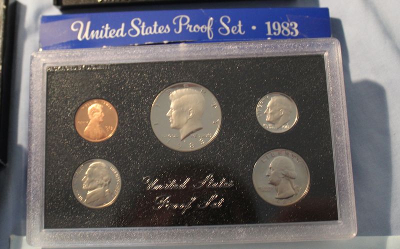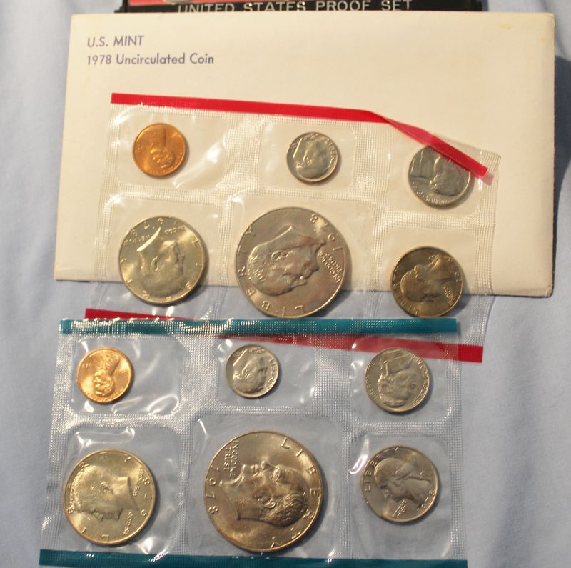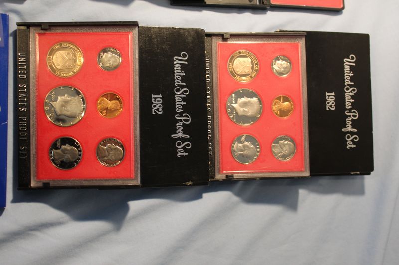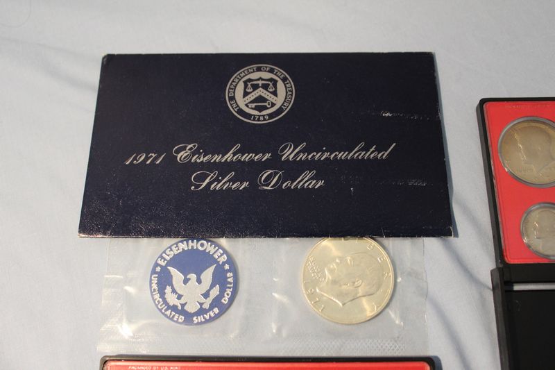 U.S. Coins and Mint Sets including a 1971 Eisenhower Uncirculated Silver Dollar; a 1977 Proof Set; a 1978 Proof Set; a 1978 Uncirculated Coin Set; a 1979 Proof Set; two 1980 Proof Sets; two 1982 Proof Sets; a 1983 Proof Set; 1994 Philadelphia Uncirculated Set. Shipping is available for this item.