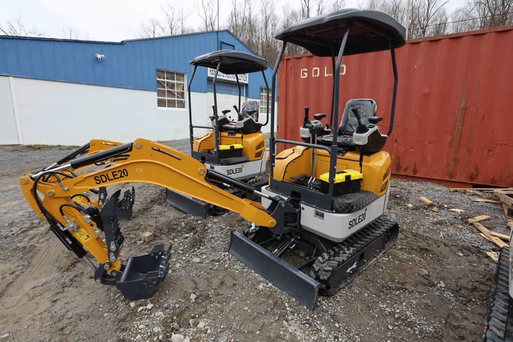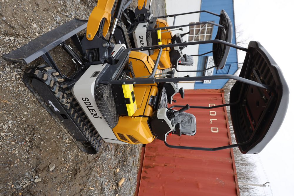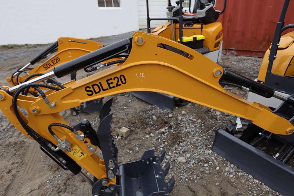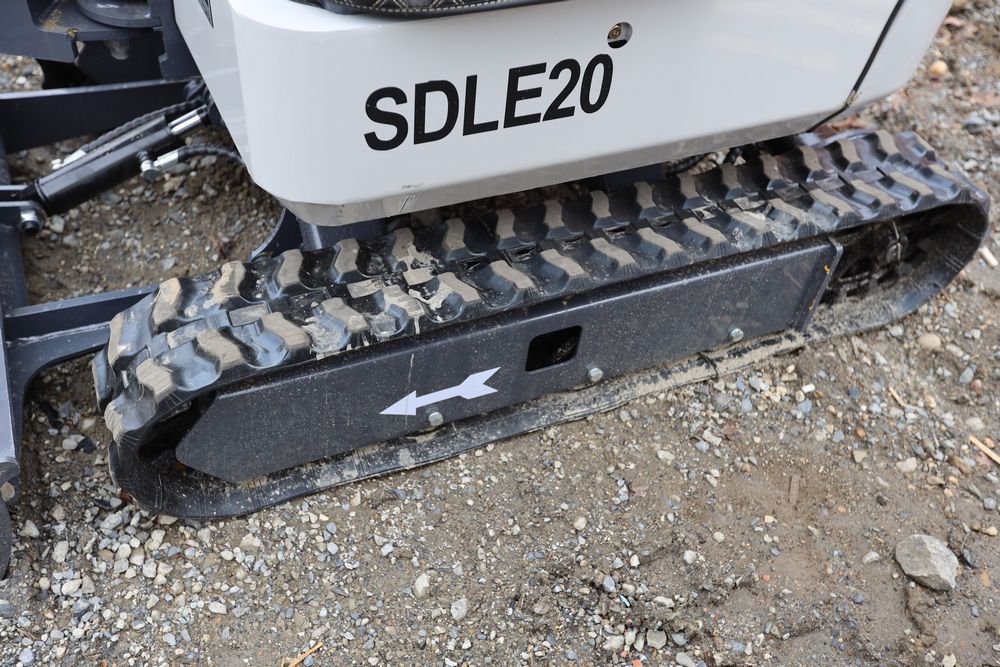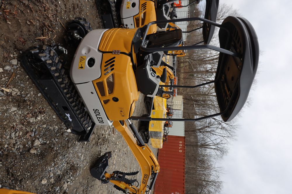 New 2025 SDLE20 Yanmar diesel mini excavator with hydraulic thumb clamp, swing boom, and dozer blade. Hours reading less than one hour.