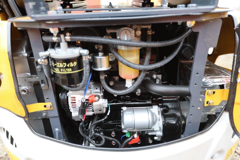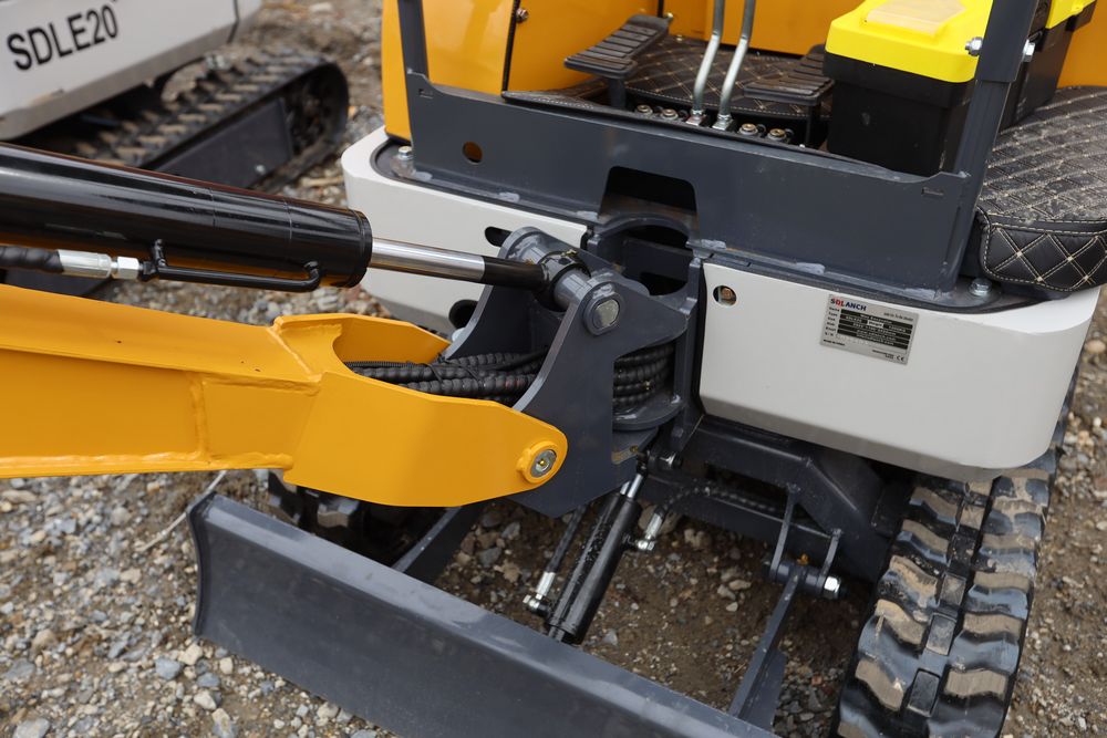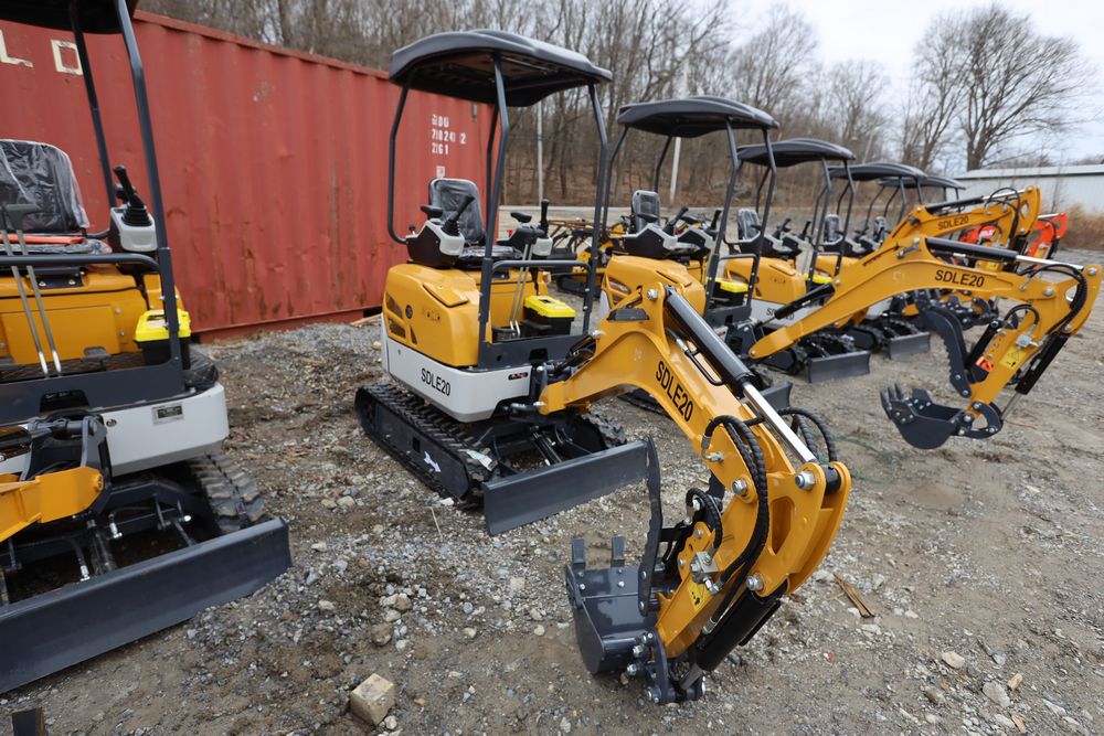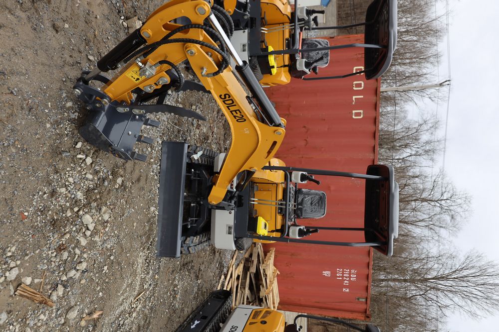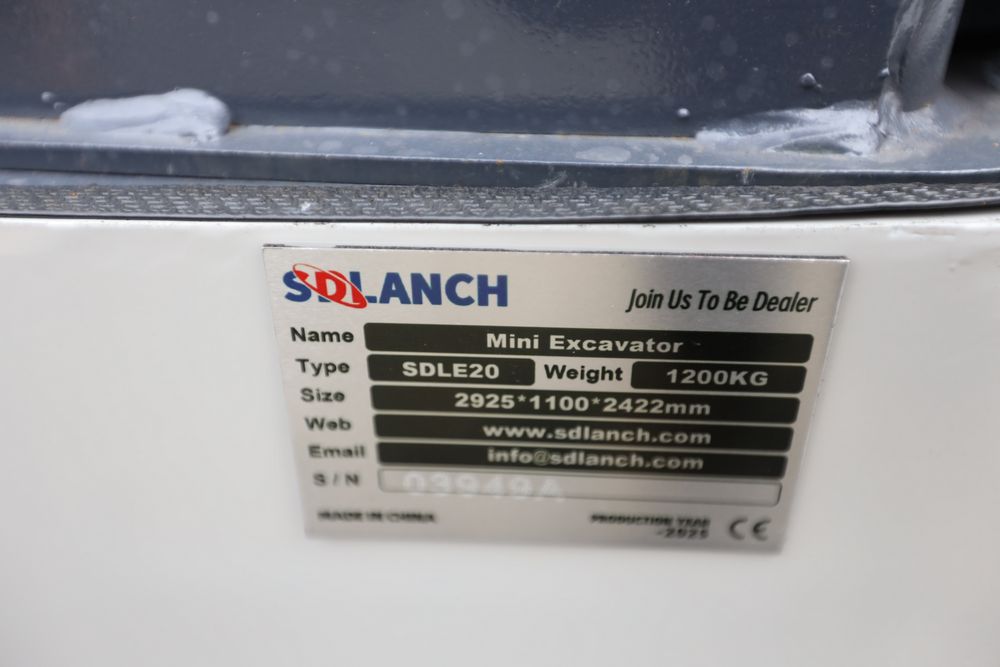 New 2025 SDLE20 Yanmar diesel mini excavator with hydraulic thumb clamp, swing boom, and dozer blade. Hours reading less than one hour.
