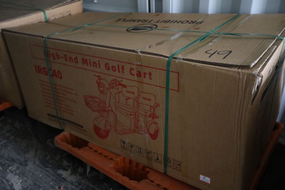 New 2025 mini three wheeled golf cart model IRGC40, battery operated, two passengers.