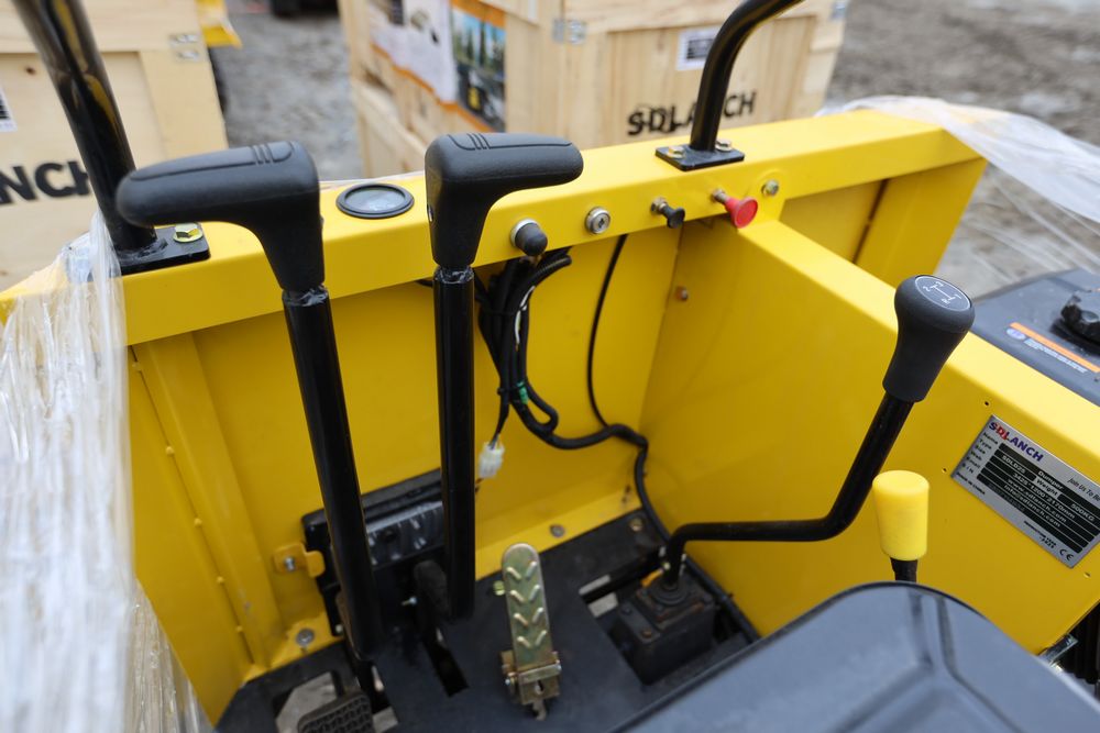 New 2025 tracked dumper model SDLD25 with a high-sided yellow steel cargo bed and rear-mounted engine. Features a single-operator seat with control levers, and rubber tracks for enhanced mobility on rough terrain.