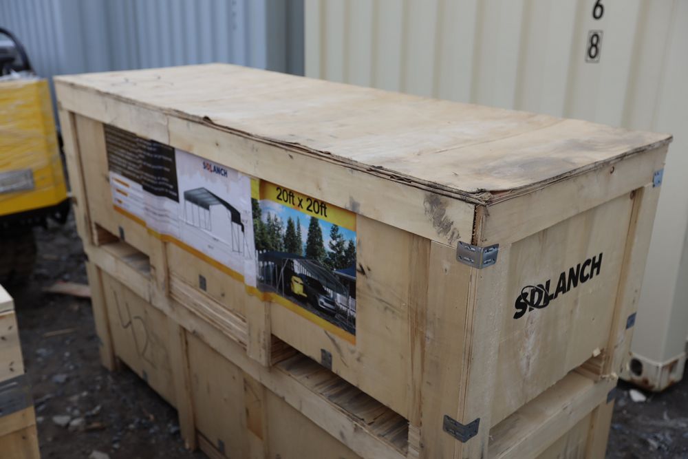 New 2025 20'x20' high-end carport. Comes packaged in wooden crate.