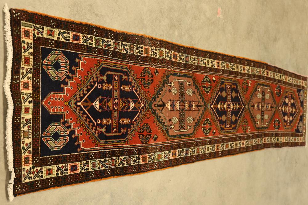 Vintage Persian Heriz tribal rug runner. 2’5x10’2.