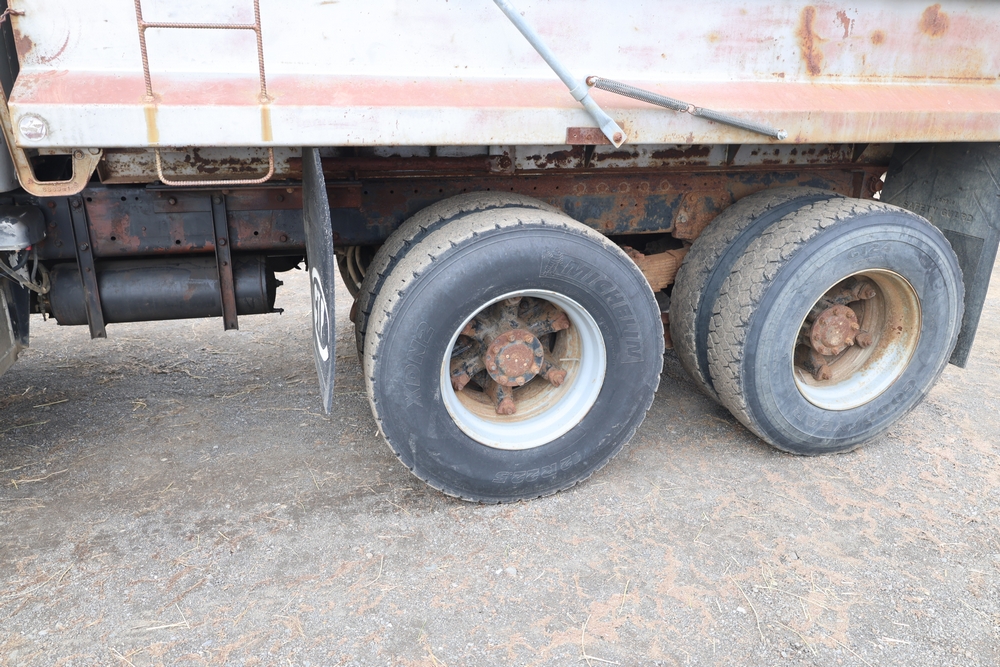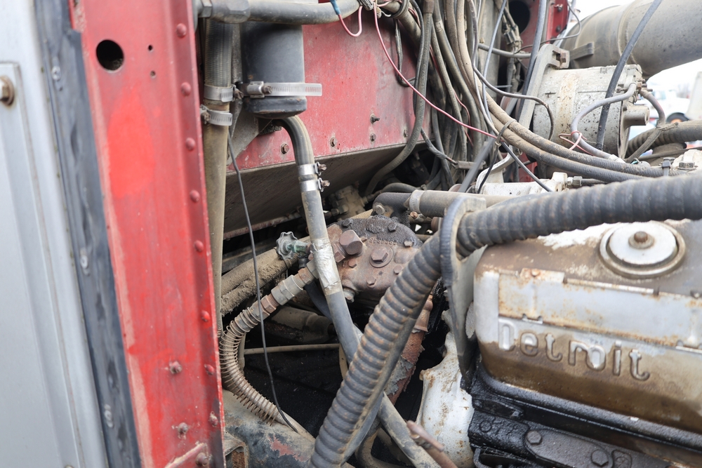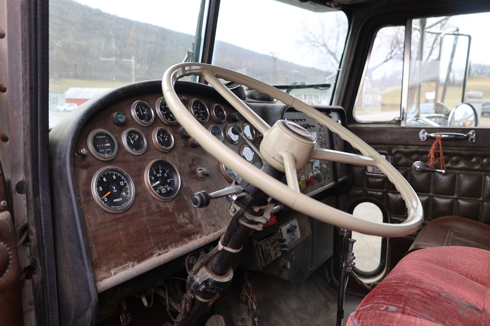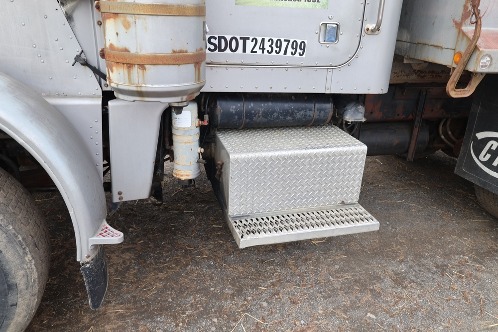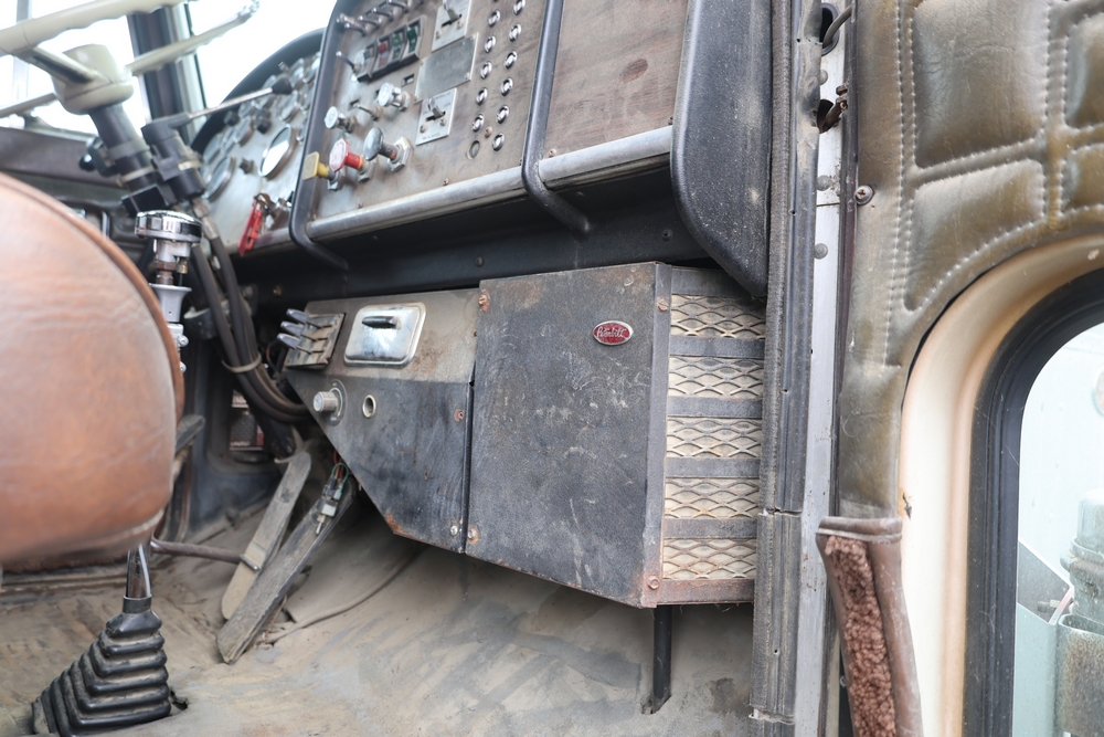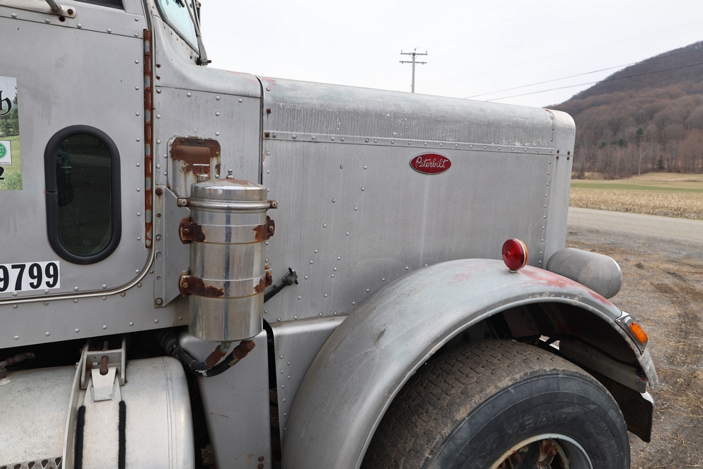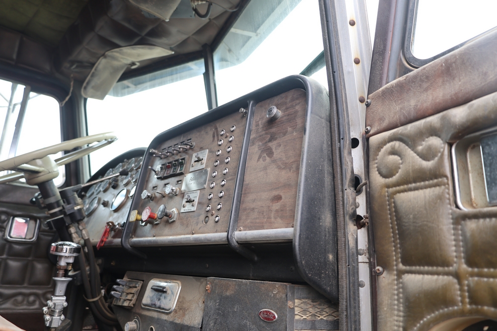 1980 Peterbilt 359 Dump Truck. Serial #: 135435-P. Odometer Reading: 137,460 miles. Hour Meter Reading: 3,264. Engine: Detroit Diesel. Transmission: Manual. With steel dump body. Interior: Vinyl seating, manual controls, auxiliary gauges. Configuration: Tandem axle, dump body. Manufacture Date: 04/1980. Made in USA. Runs and drives. Title and key available.