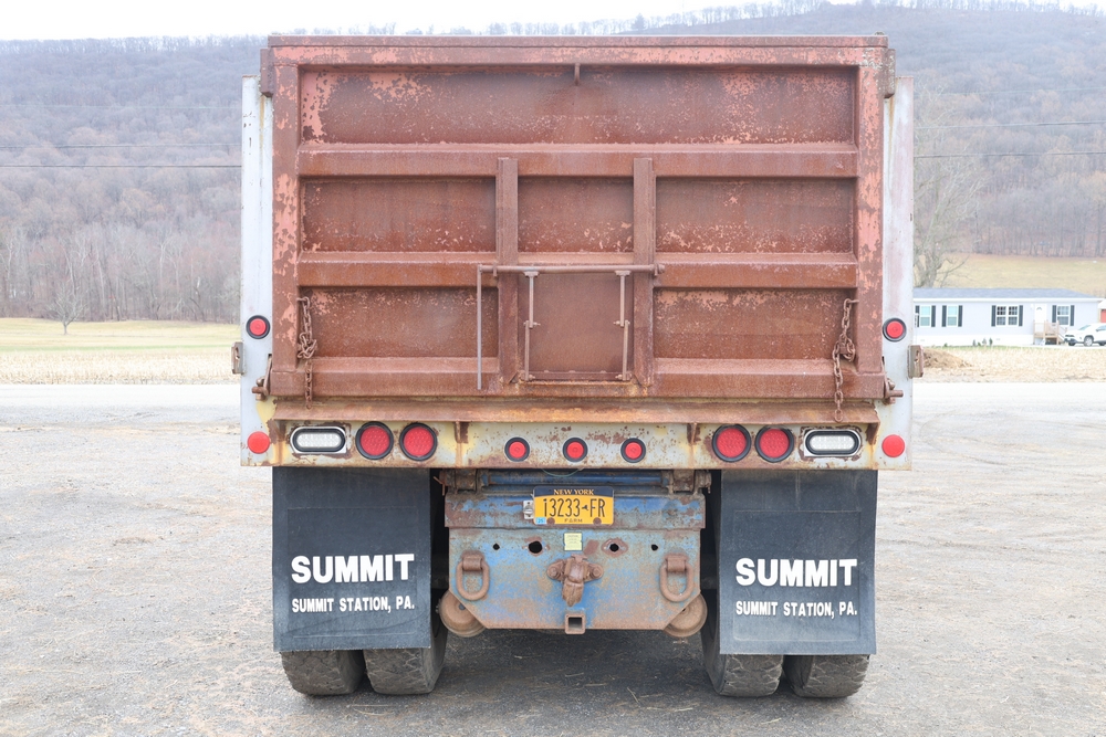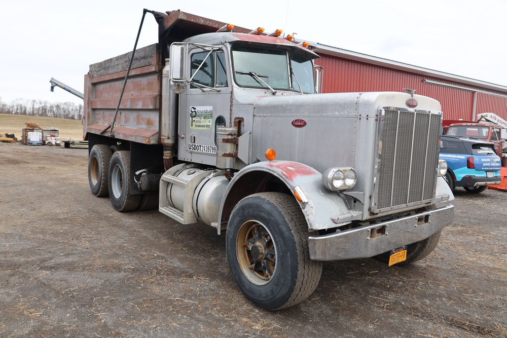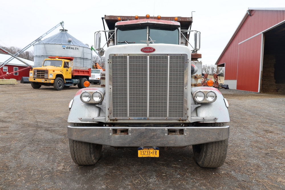 Items include 1980 Peterbilt 359 dump truck. 1989 International 1654; 1998 International 4700; 2001 Triton; New Holland BC5070 square baler; IMT 9800 Series crane attachment; Hesston 3710 hay tedder; Allis-Chalmers bale wagon; John Deere 444 corn head; set of large agricultural tractor tires; concrete form supplies & more. Items are located in Hopewell Junction, NY.