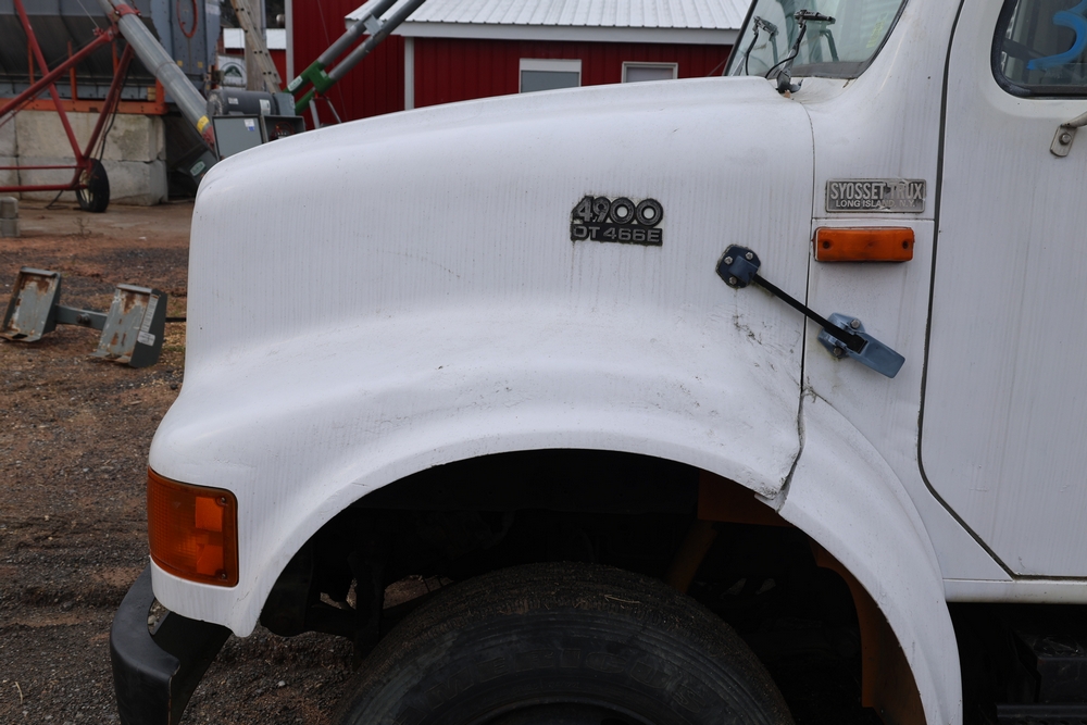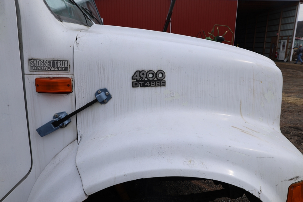 Items include 1980 Peterbilt 359 dump truck. 1989 International 1654; 1998 International 4700; 2001 Triton; New Holland BC5070 square baler; IMT 9800 Series crane attachment; Hesston 3710 hay tedder; Allis-Chalmers bale wagon; John Deere 444 corn head; set of large agricultural tractor tires; concrete form supplies & more. Items are located in Hopewell Junction, NY.