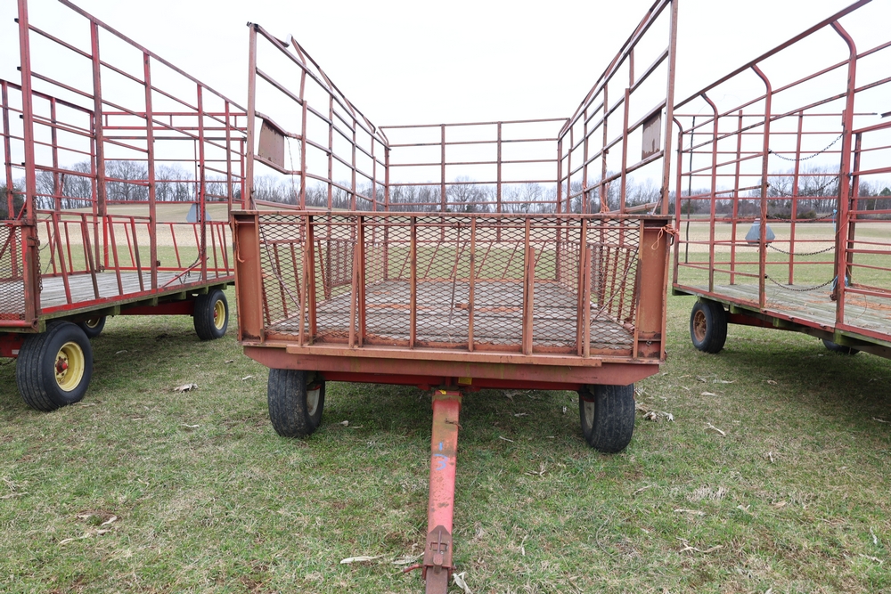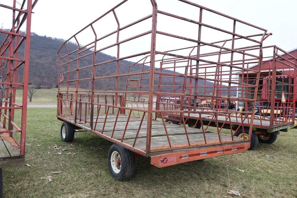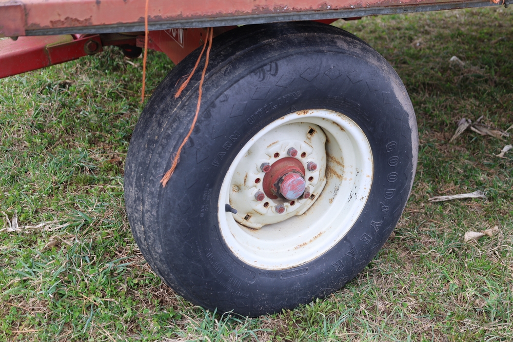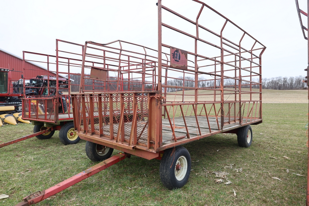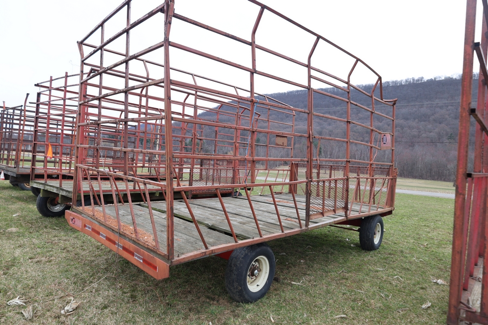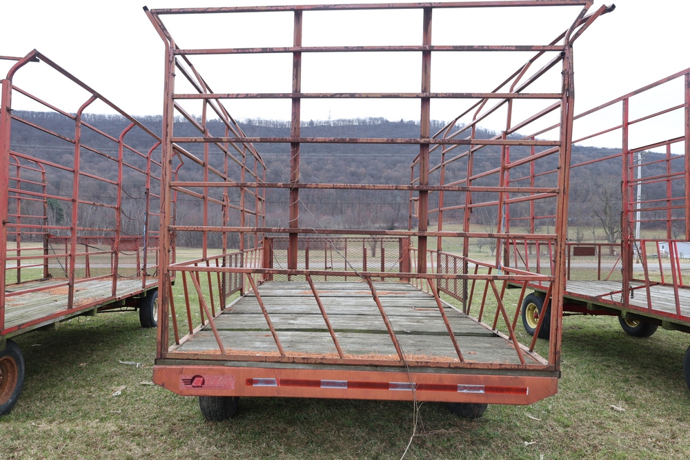 Items include 1980 Peterbilt 359 dump truck. 1989 International 1654; 1998 International 4700; 2001 Triton; New Holland BC5070 square baler; IMT 9800 Series crane attachment; Hesston 3710 hay tedder; Allis-Chalmers bale wagon; John Deere 444 corn head; set of large agricultural tractor tires; concrete form supplies & more. Items are located in Hopewell Junction, NY.