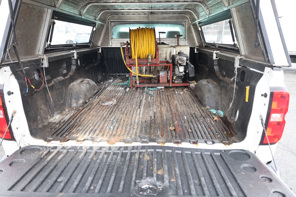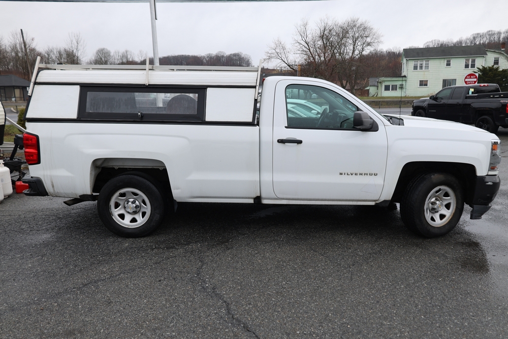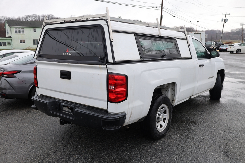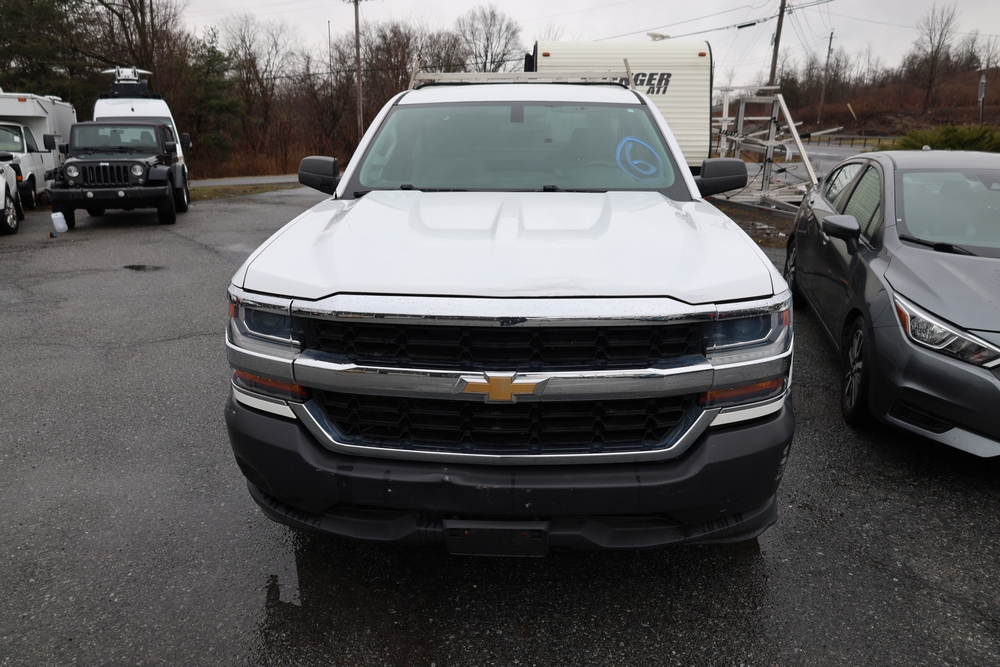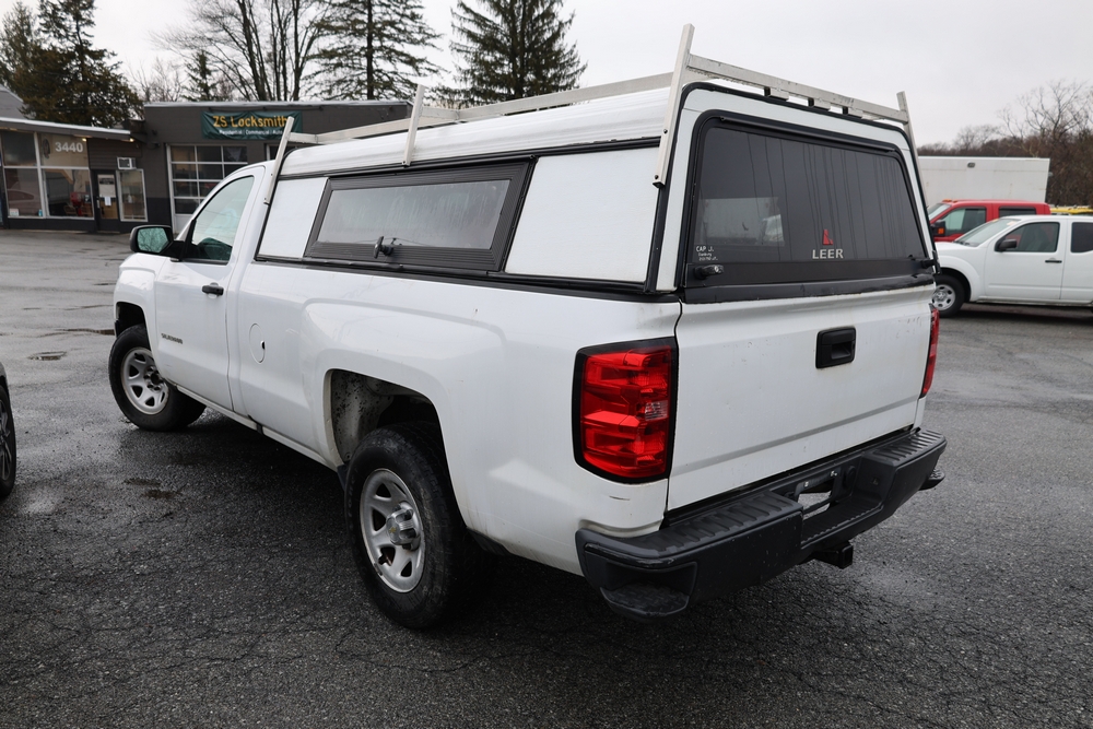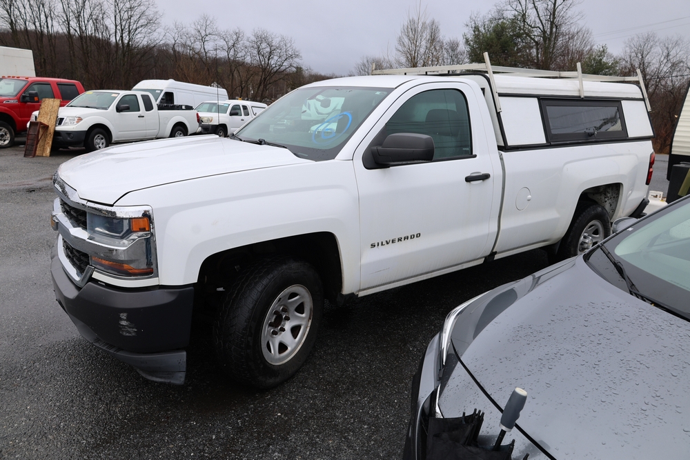 2016 Chevrolet Silverado 1500 Work Truck Short Box 2WD with a 4.3L V6 engine. VIN: 1GCNCNEH2GZ120610. Odometer reading: 166954. Body: regular cab pickup 2-dr. Two door cab, pickup bed with camper shell, ladder rack, steel wheels, trailer hitch receiver, side mirrors, front grille, front bumper, hose reel unit with mounted tank and engine in bed. NJ Dealer transfer paperwork, may not pass NYS inspection. Runs and drives. Key available.