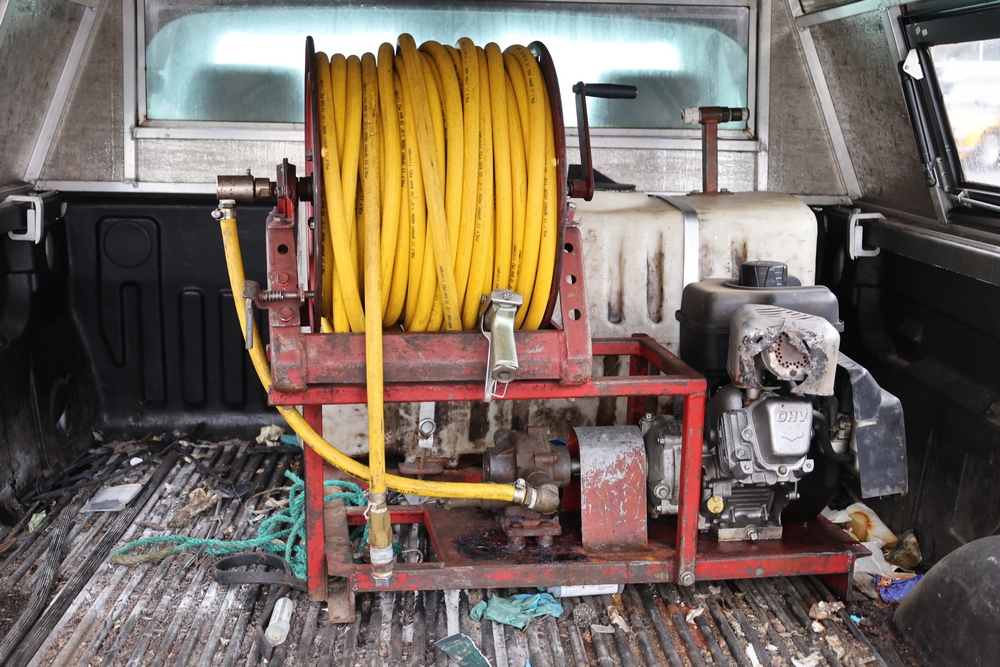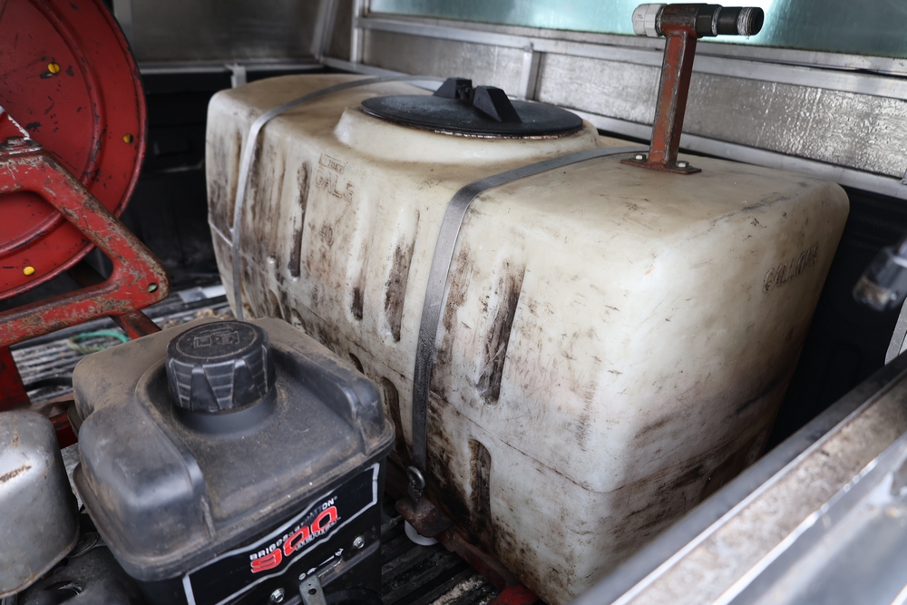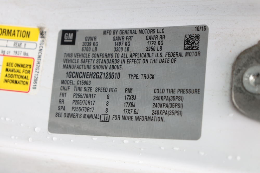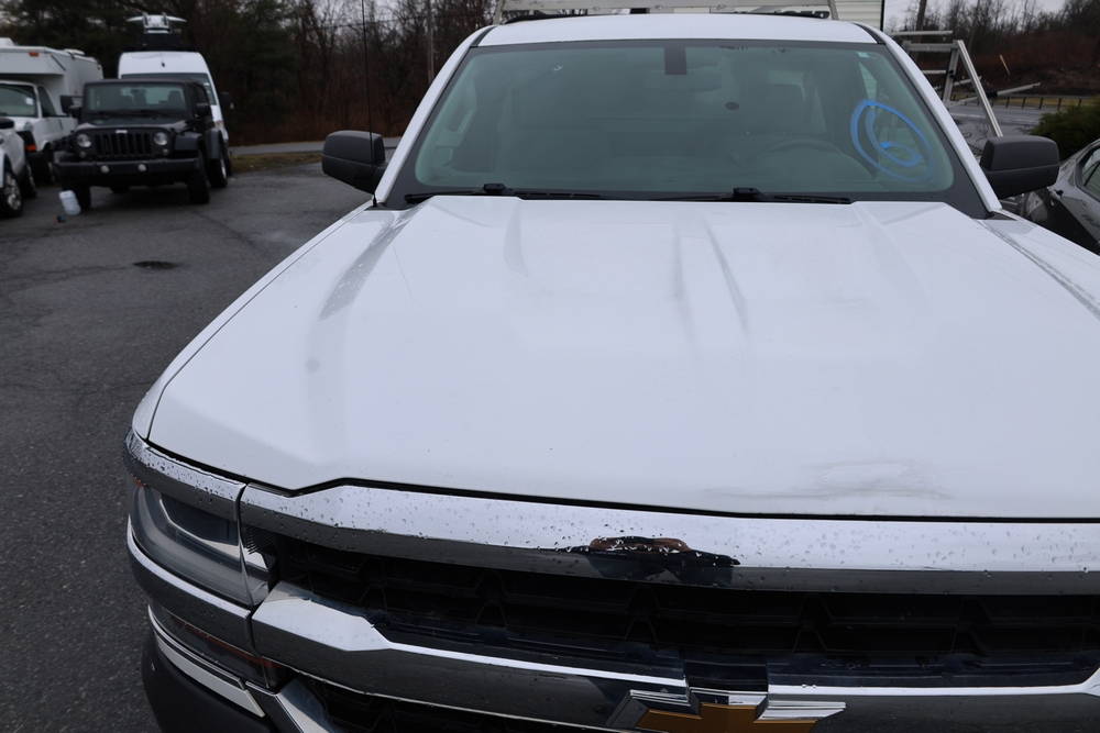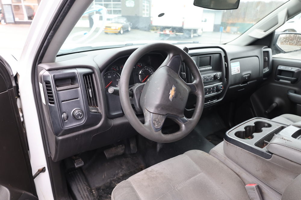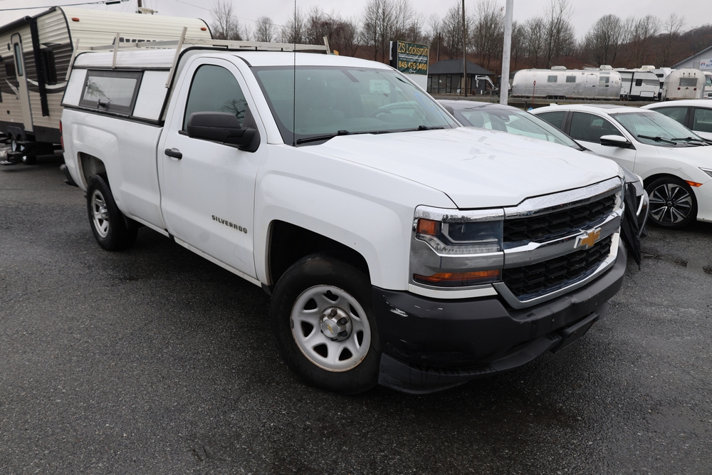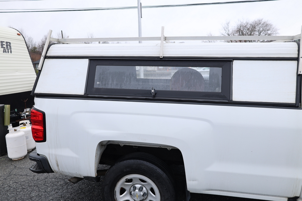 2016 Chevrolet Silverado 1500 Work Truck Short Box 2WD with a 4.3L V6 engine. VIN: 1GCNCNEH2GZ120610. Odometer reading: 166954. Body: regular cab pickup 2-dr. Two door cab, pickup bed with camper shell, ladder rack, steel wheels, trailer hitch receiver, side mirrors, front grille, front bumper, hose reel unit with mounted tank and engine in bed. NJ Dealer transfer paperwork, may not pass NYS inspection. Runs and drives. Key available.