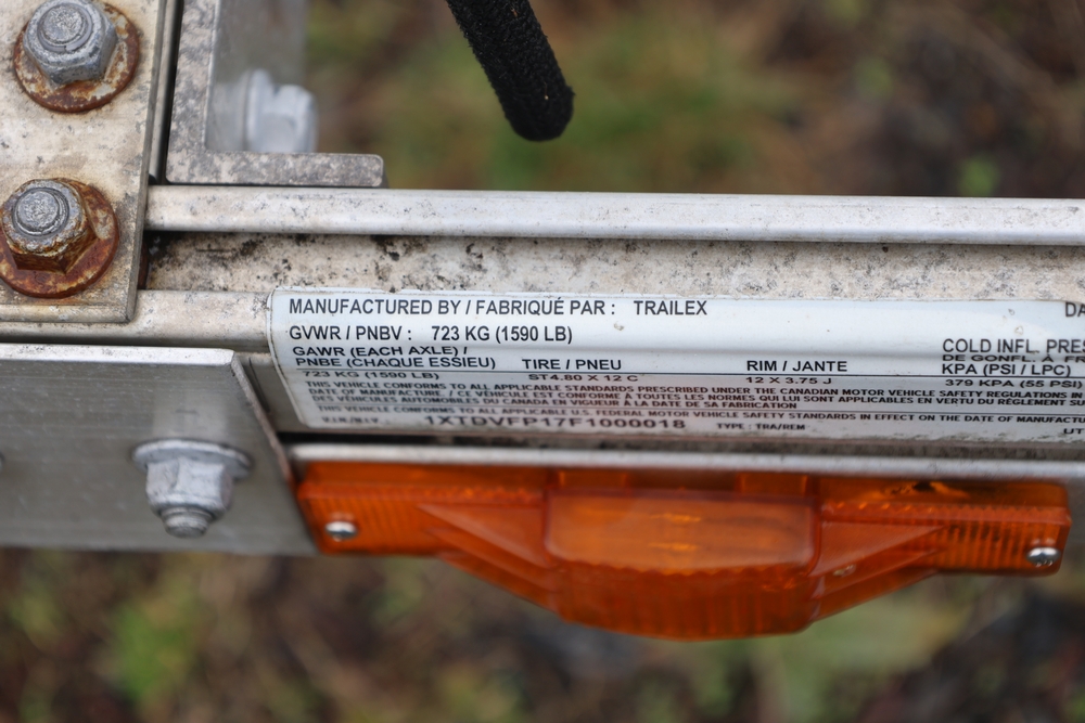 2016 Trailex Inc. kayak trailer. VIN: 1XTDVFP17F1000018. Body: trailer. Aluminum trailer, single axle, fenders, tongue jack, coupler, upright frame supports for kayak transport. Bill of sale only.