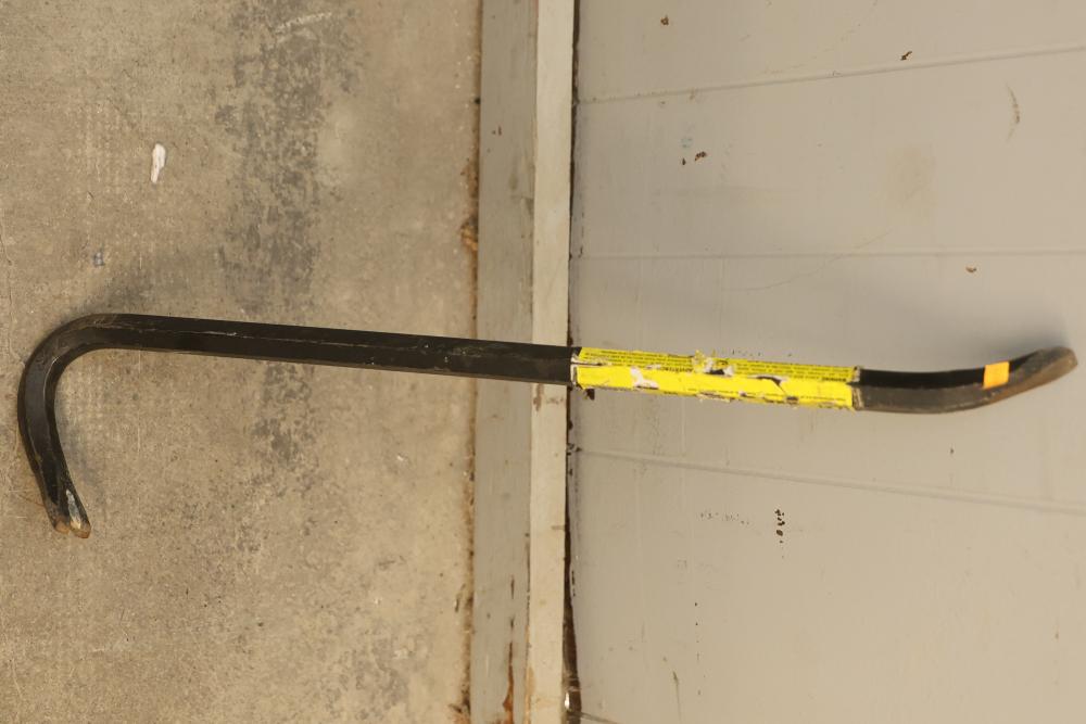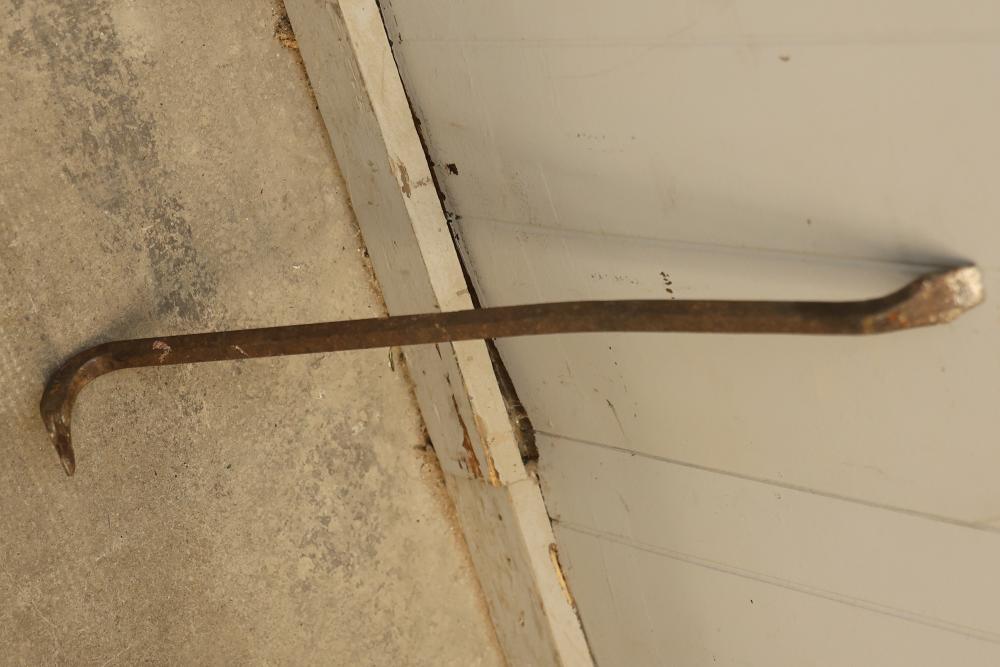Crowbar and Pry Bar Set. The set includes two crowbars with curved ends and one pry bar with a flat, notched design for leveraging or nail removal. Sturdy construction and suitable for various heavy-duty tasks. Pickup only.