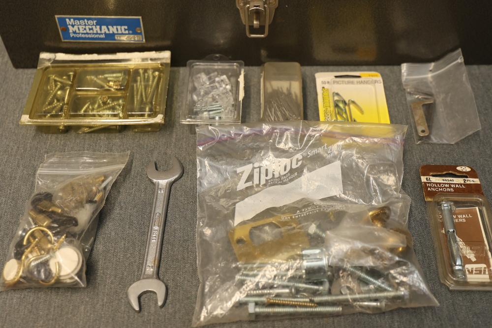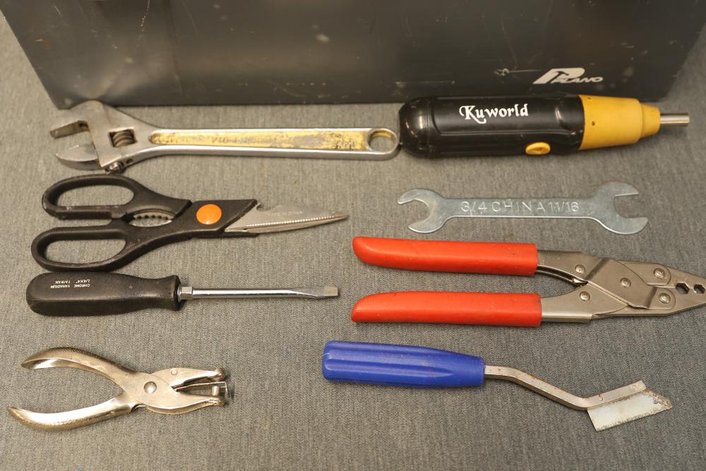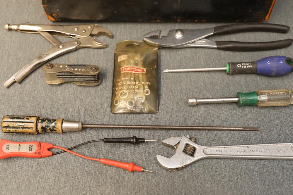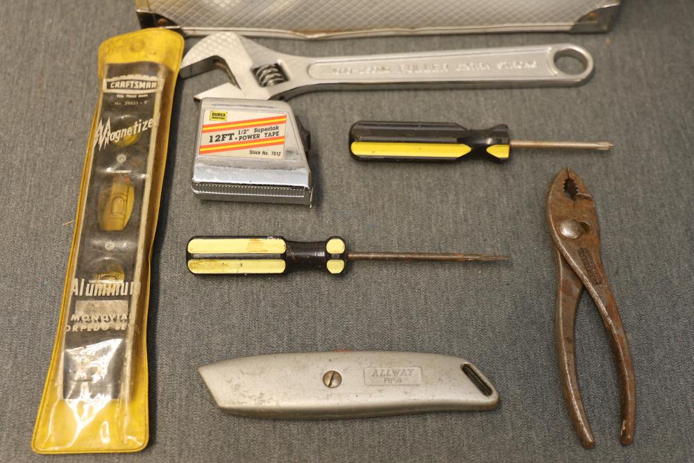 Hand Tools Lot including 6 toolboxes with tools, a PA70007 DataShark Network Tool Kit for cutting and stripping Ethernet cable, and a 30-piece Pro’s Kit combination hex key set (missing the 4.0 mm hex key). Includes various tools for maintenance and repair tasks. Pickup only.