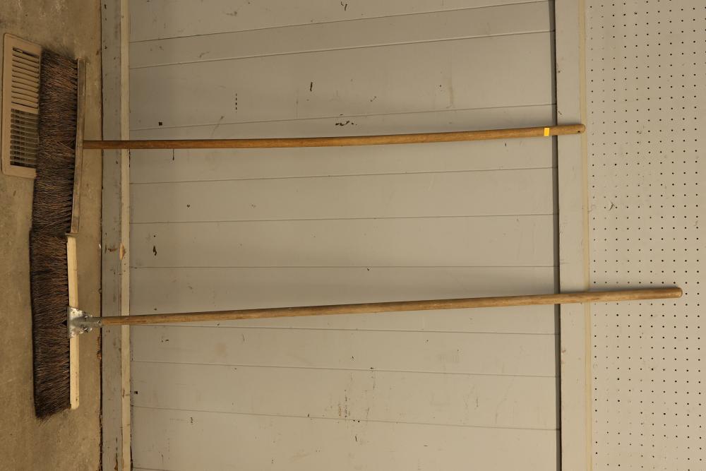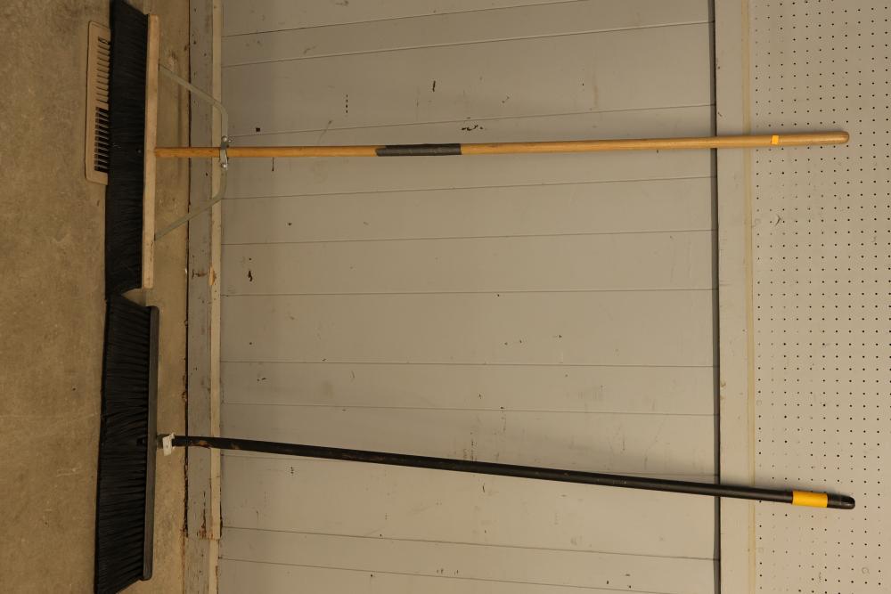 Maintenance Tools Set Including 6 Long-Handled Push Brooms. The tools feature six durable brooms with long handles suitable for sweeping large areas. These brooms are designed for easy and efficient removal of dust, dirt, and garbage off of surfaces. Pickup only.