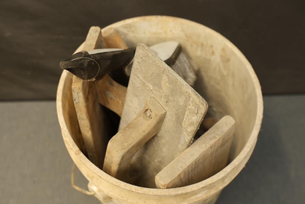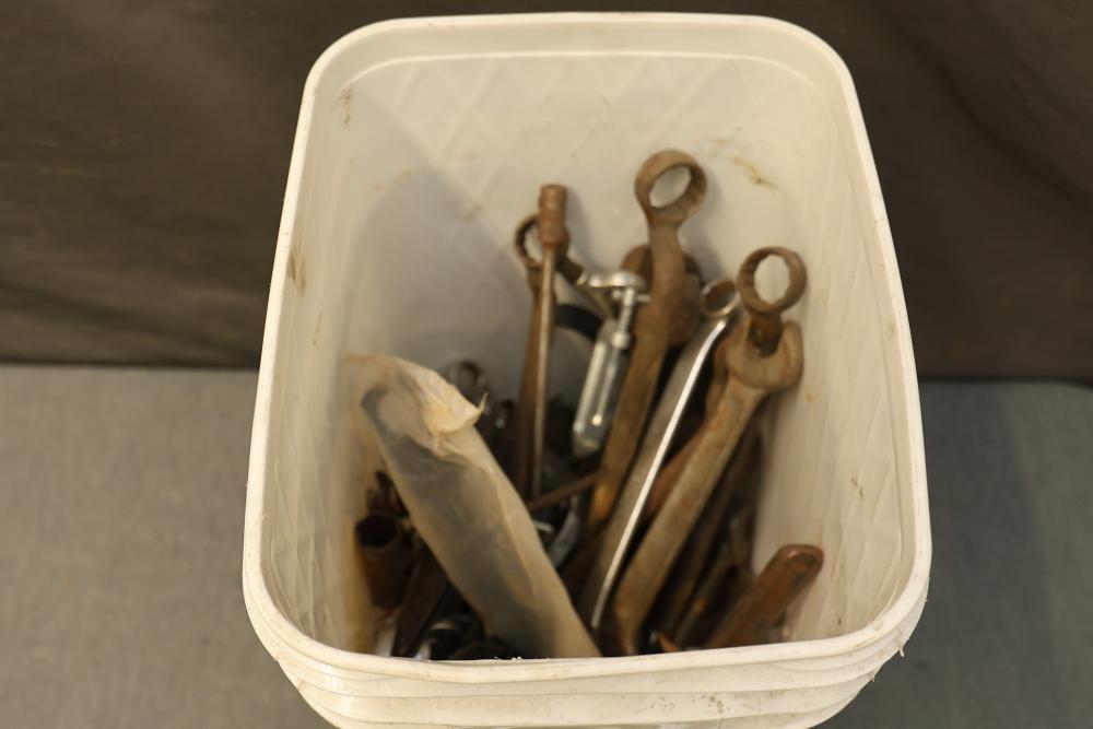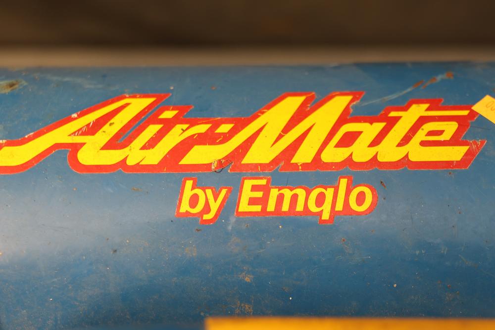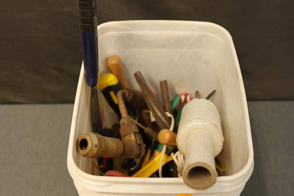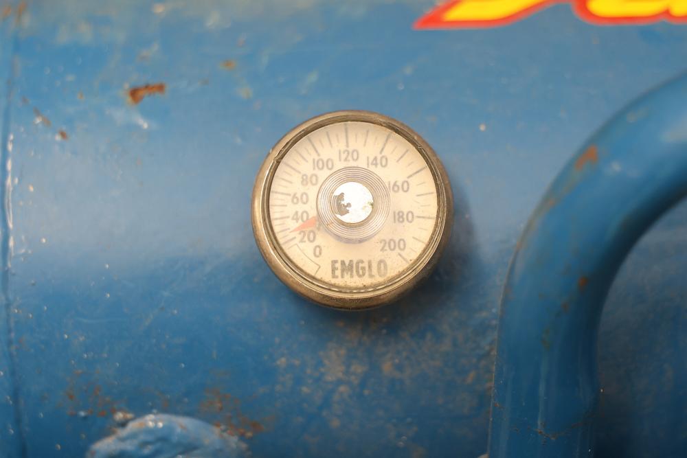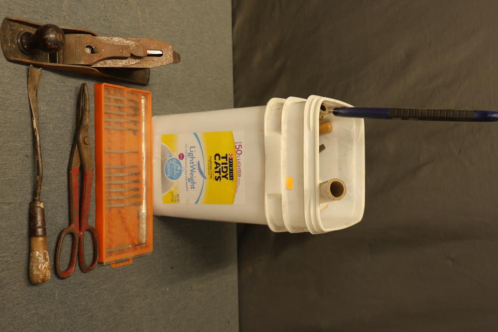 Hand Tools and Automotive Tools Set Including Storage Chest, Jacks, Compressor, and More. Includes a vintage storage chest with divided compartments, a vintage automotive jack, a Torin T92003B hydraulic welded bottle jack, a Schumacher 1200A battery extender with jumper cables, an Emglo Airmate portable air compressor (works intermittently), a Craftsman 51176 mechanic roller seat, and four buckets of various hand tools. Pickup only.