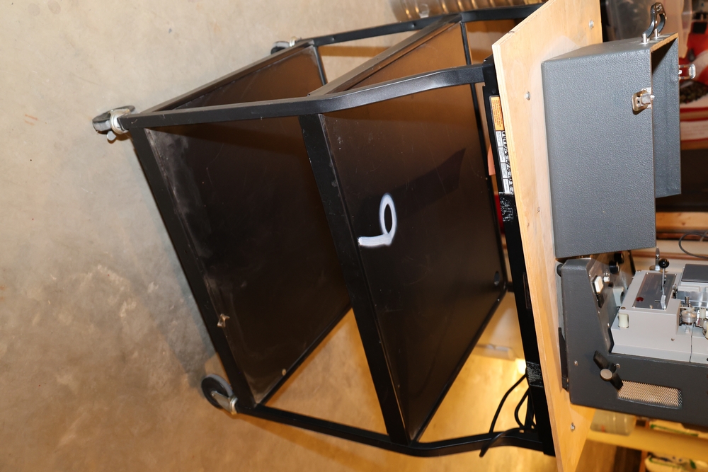 Vintage Kodak Projector,Excellent condition, missing 1 wheel for tape; Includes AV cart, Outlets still function, 4 wheels, 2 with locking mechanism, 3 outlets; Pull down 8' projector screen.