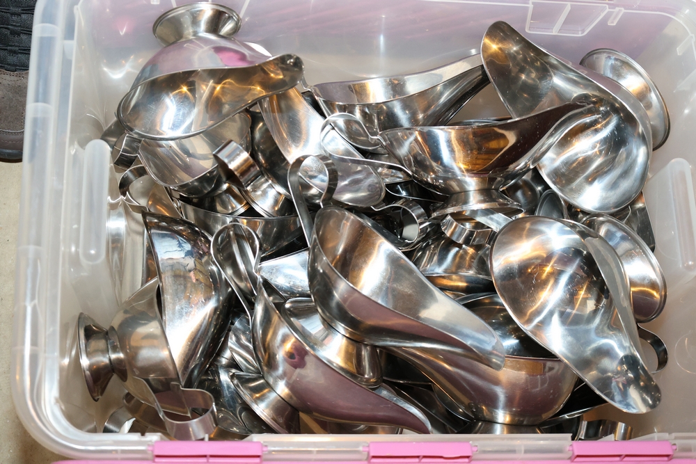 Items include Kyocera standup copy machine; Bunn coffee machines; Mastercraft commercial floor cleaner/buffer; vintage Globe commercial slicing machine; vintage Kodak projector; vintage poker tables; rubber kitchen interlocking floor mat; assorted steak knives; coffee cups/saucers; dinner plates; Minolta scanner; GE microwave; vintage fire extinguisher; vintage Indian pack; metal roll-up shutter & more. Items are located in Hopewell Junction, NY.