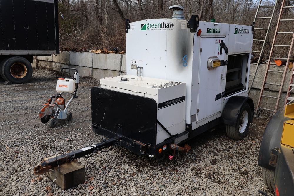 Items include 2012 Chevrolet Silverado 3500HD work truck crew cab; 2006 GMC C5C042 service truck; Ingersoll-Rand VR-90B rough terrain forklift; DryAir Greenthaw heat thaw unit; Grizzly G0671 4 HP dust collector; Wacker Neuson WP1550 plate compactor; Woodmaster W-718 planer; Shop Fox W1674 shaper; scaffold frames; submersible pumps; lay flat hoses; Tapco aluminum siding brake; concrete blankets; Paslode IM250A Li 16 gauge cordless angled finish nailer; Smith cutting torch with hoses & regulators; Propane tank with hose & burner stand; Hougen HMD904 magnetic drill; traffic cones; pallet jacks; Better Built fluid transfer tank; Neptune water meter assembly & more. Items are located in New Paltz, NY.
