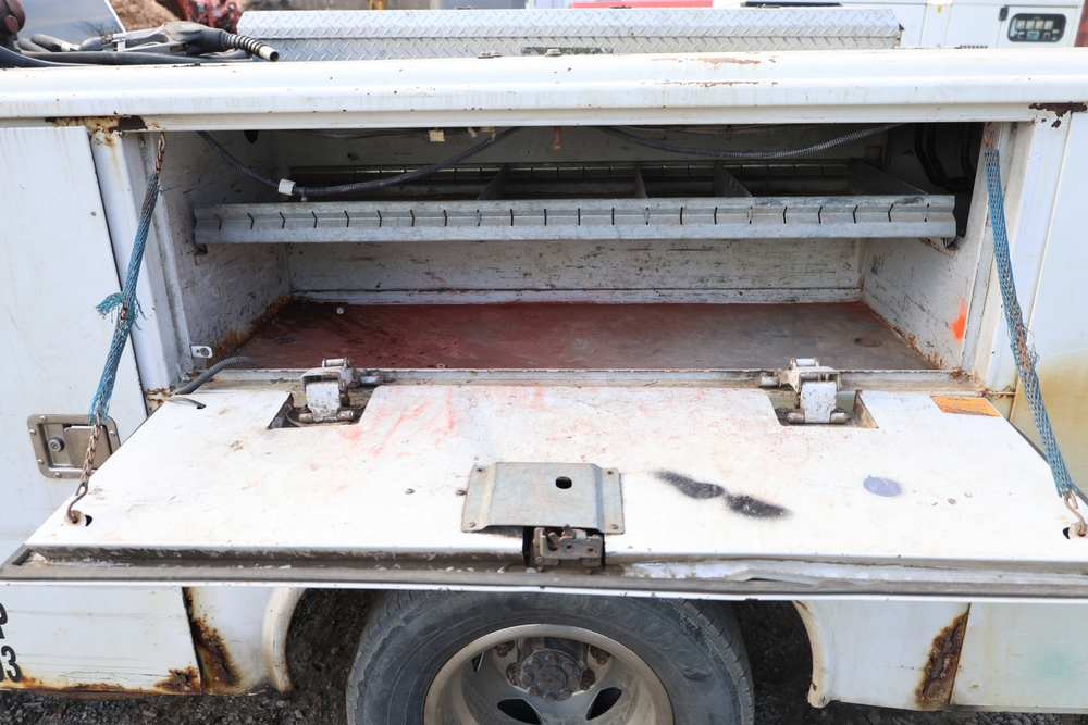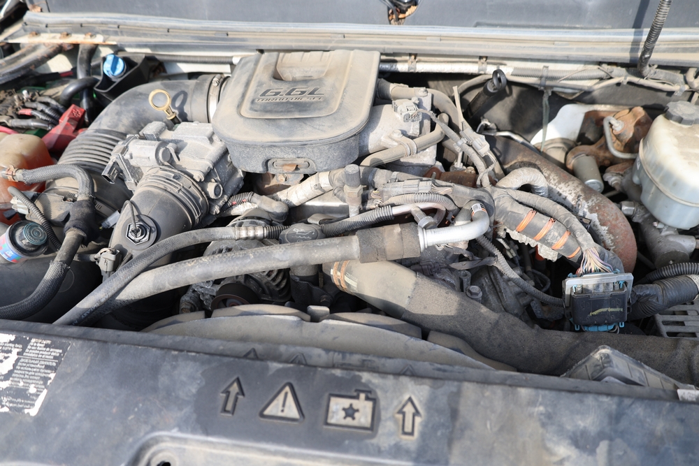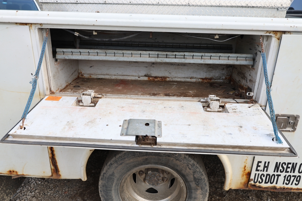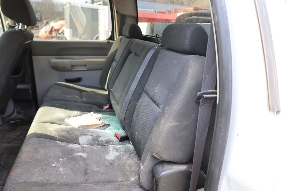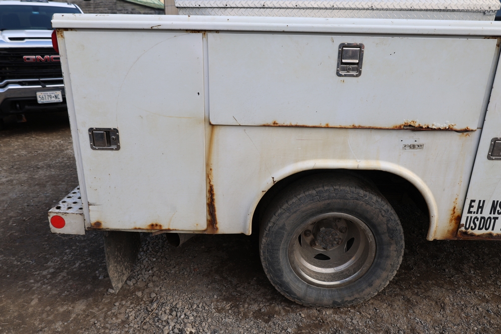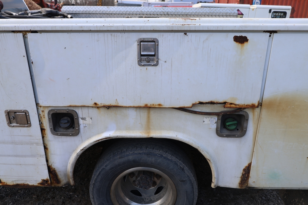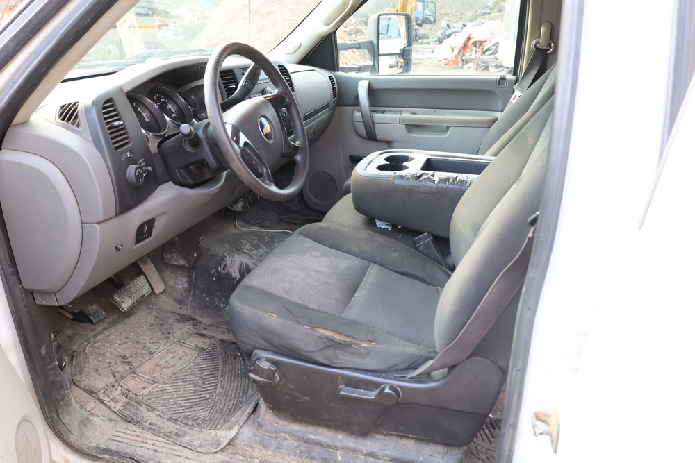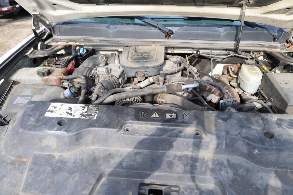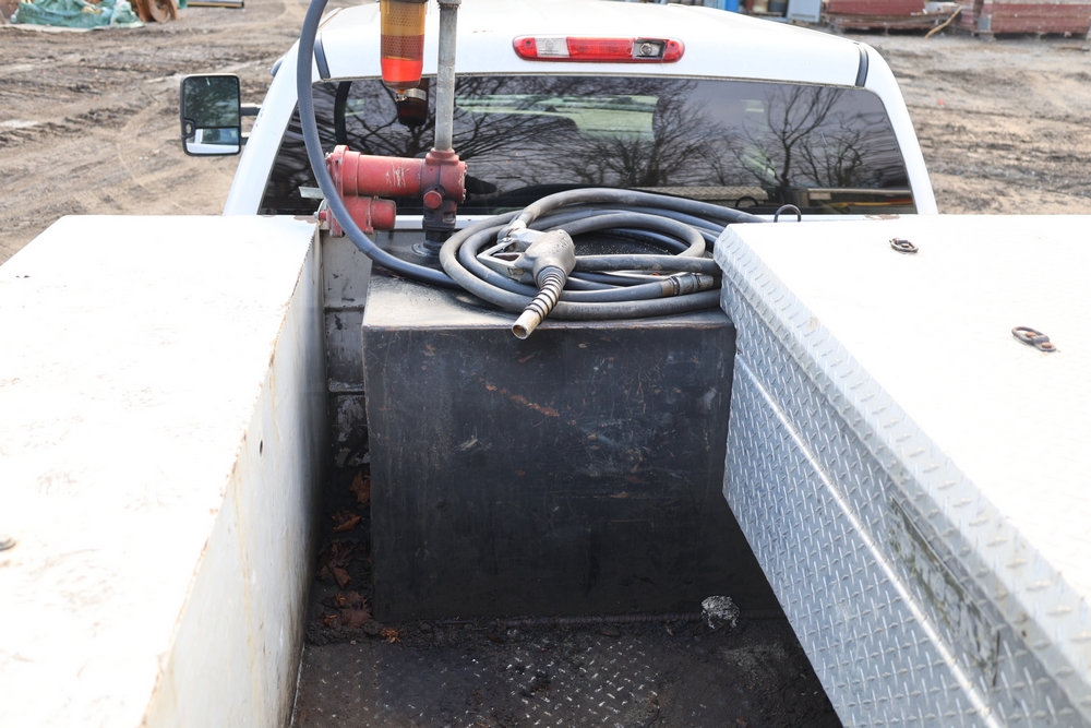 2012 Chevrolet Silverado 3500HD Work Truck Crew Cab 2WD service truck with a 6.6L V8 OHV 32V TURBO DIESEL engine. VIN: 1GB4CZCL1CF172191. Odometer reading: 276690. Body: crew cab pickup 4-dr. RWD, 6-speed automatic transmission, locking differential, utility body, dual rear wheels, running boards, tow hooks, 100 gallon fuel transfer tank with pump and nozzle, diamond plate crossover toolbox, beacon light, steel wheels, tow hitch receiver, air conditioning, cruise control, tilt steering, AM/FM radio, power door locks. Runs and drives. Title and key available.