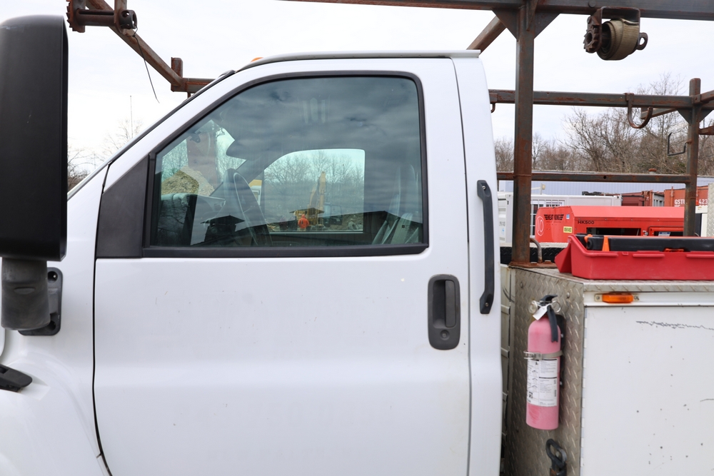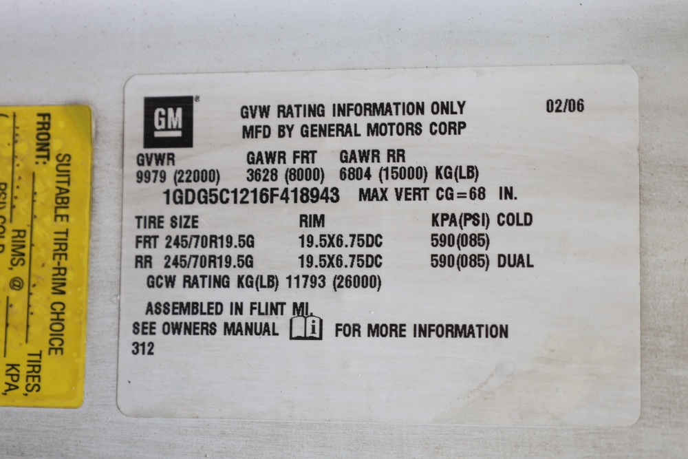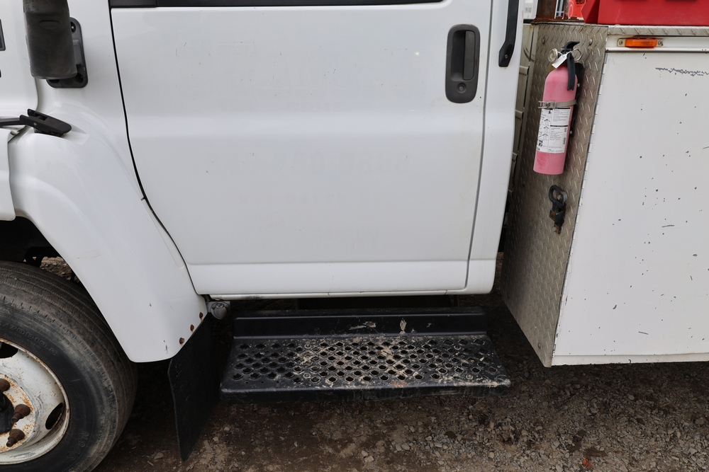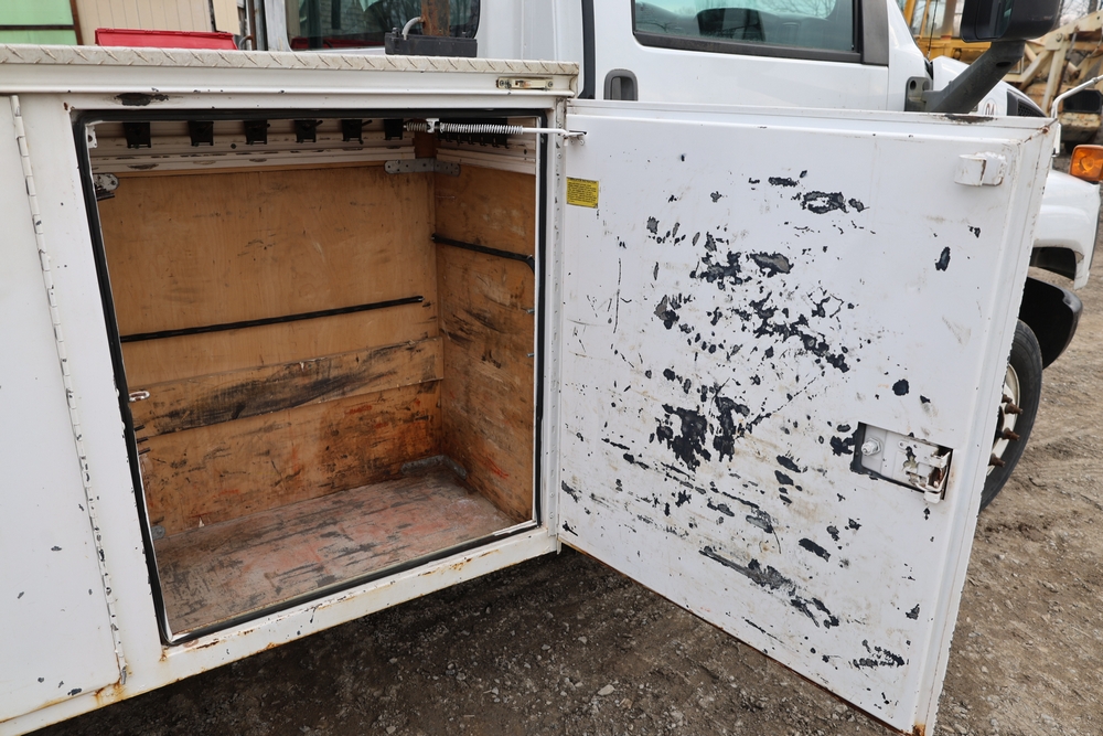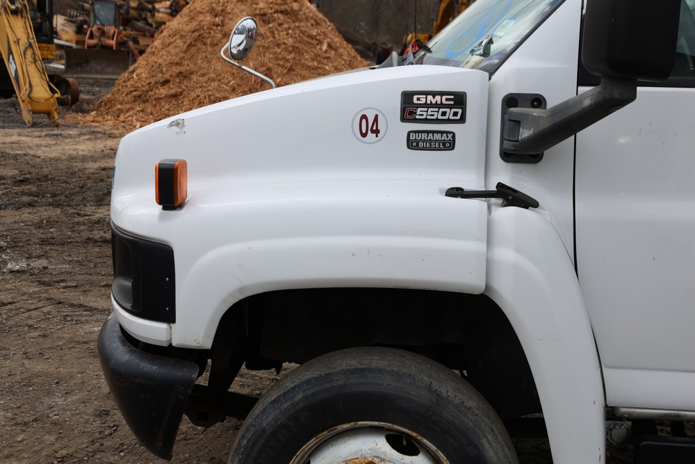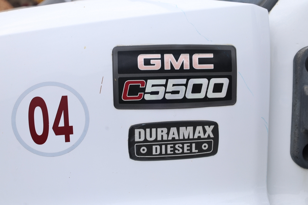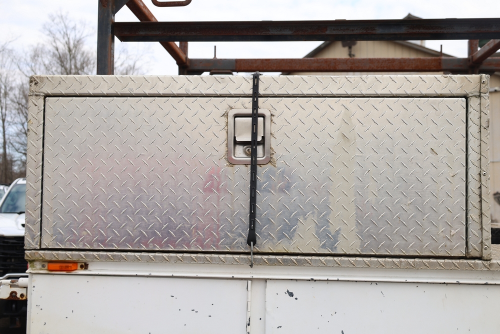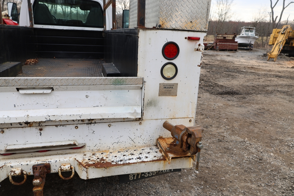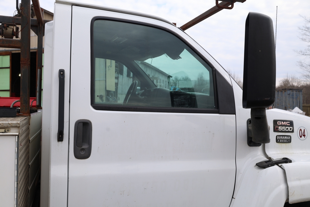 2006 GMC C5C042 service truck with a 6.6L V8 TURBO DIESEL engine. VIN: 1GDG5C1216F418943. Odometer reading: 104402. Body: chassis and cab. 4X2, service body, ladder rack, diamond plate toolbox, tow hitch receiver, Boss Industries hydraulic pump, AM/FM radio, trailer brake controller. Runs and drives. Title and key available.