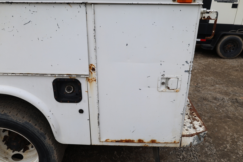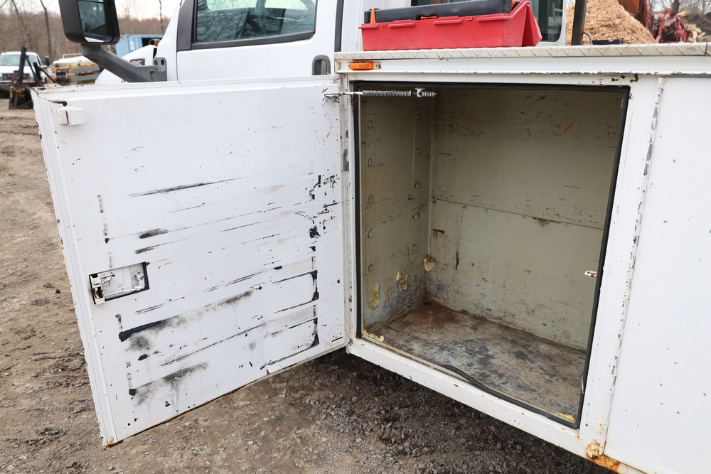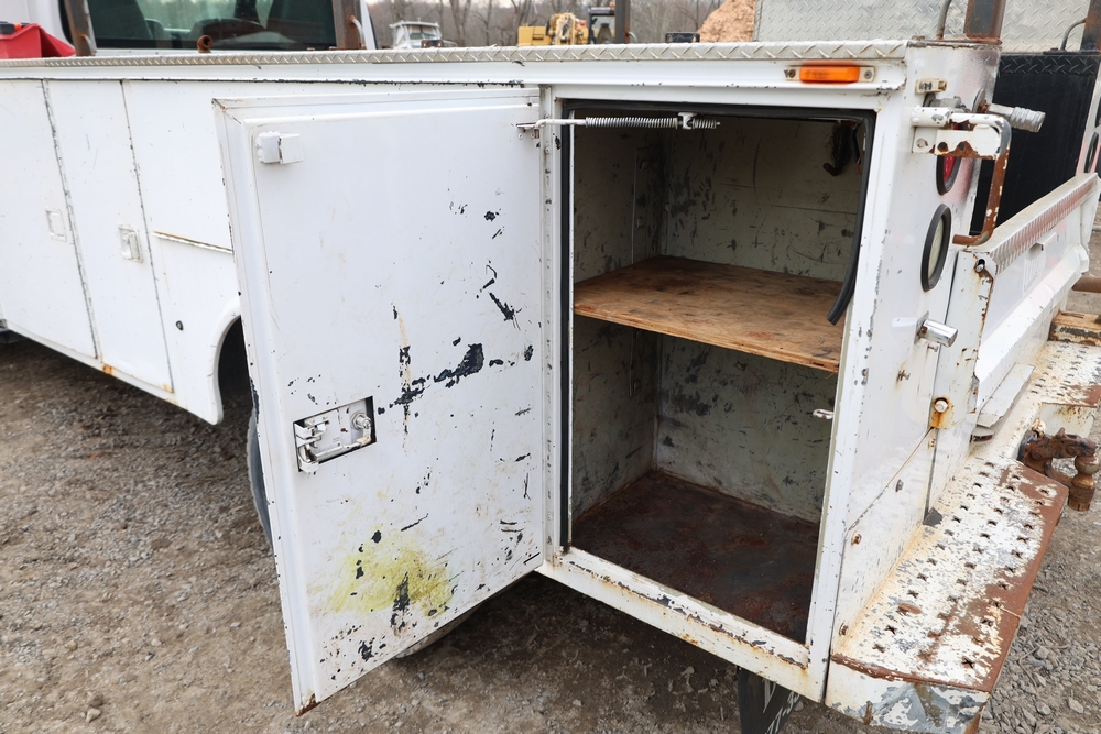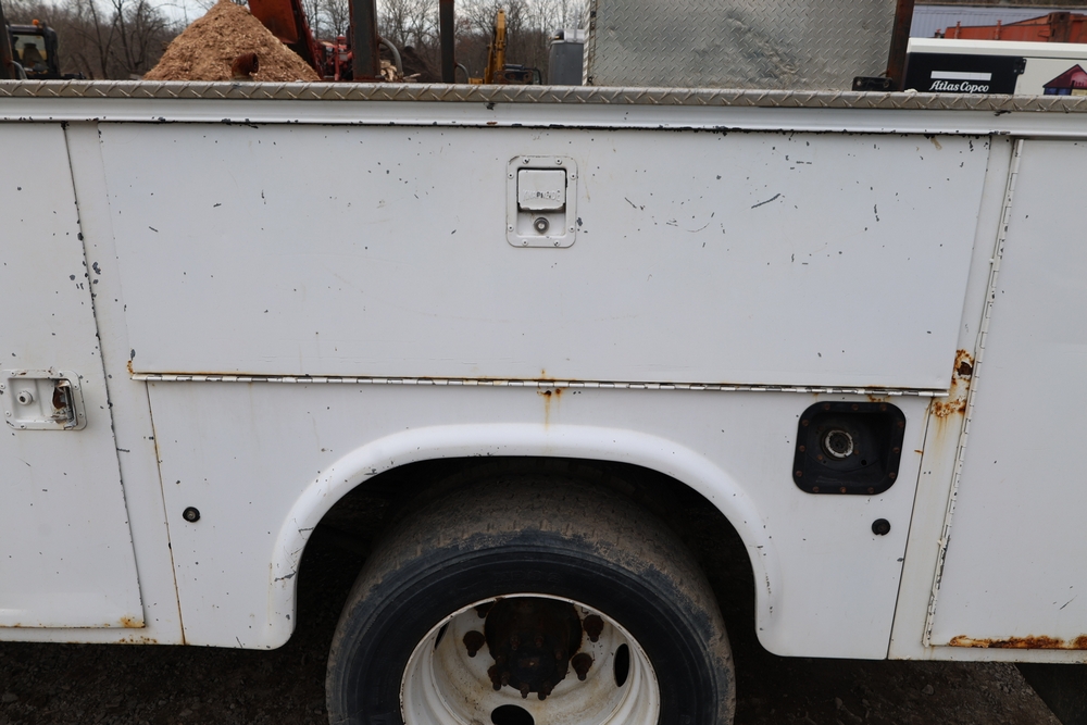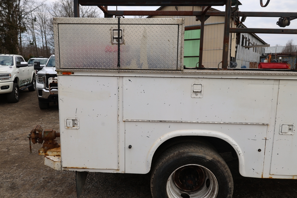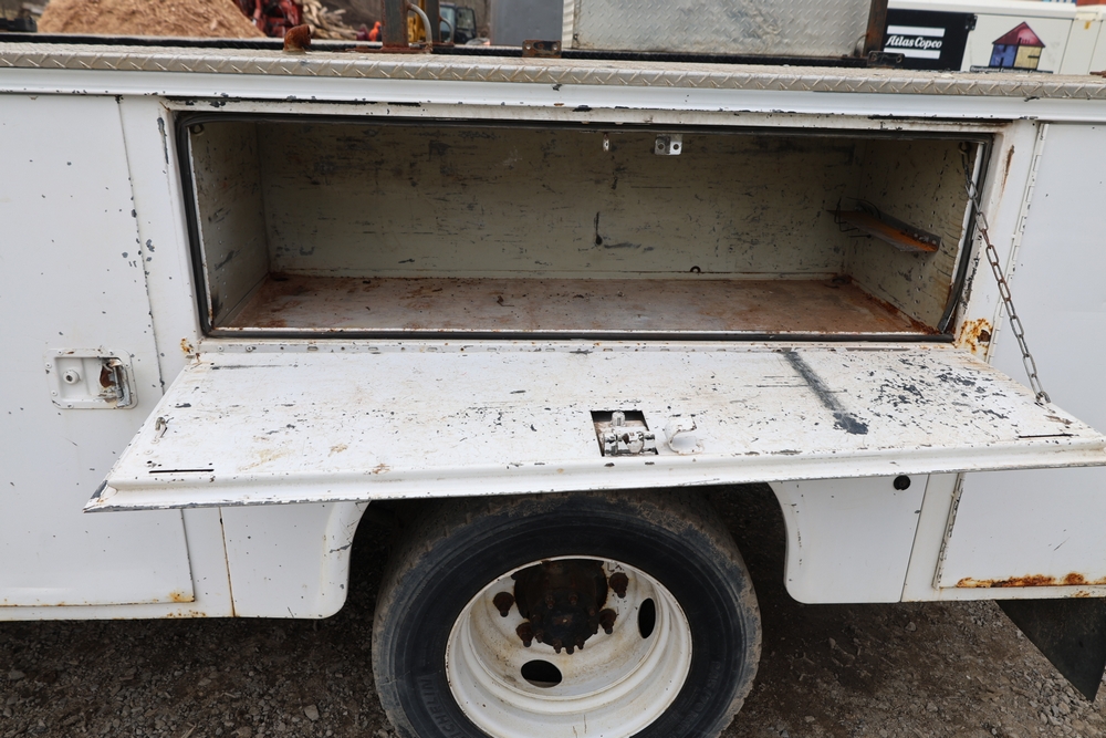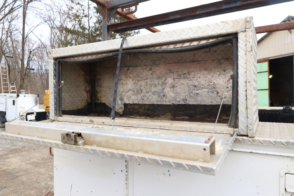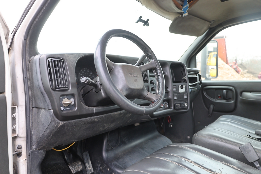 2006 GMC C5C042 service truck with a 6.6L V8 TURBO DIESEL engine. VIN: 1GDG5C1216F418943. Odometer reading: 104402. Body: chassis and cab. 4X2, service body, ladder rack, diamond plate toolbox, tow hitch receiver, Boss Industries hydraulic pump, AM/FM radio, trailer brake controller. Runs and drives. Title and key available.