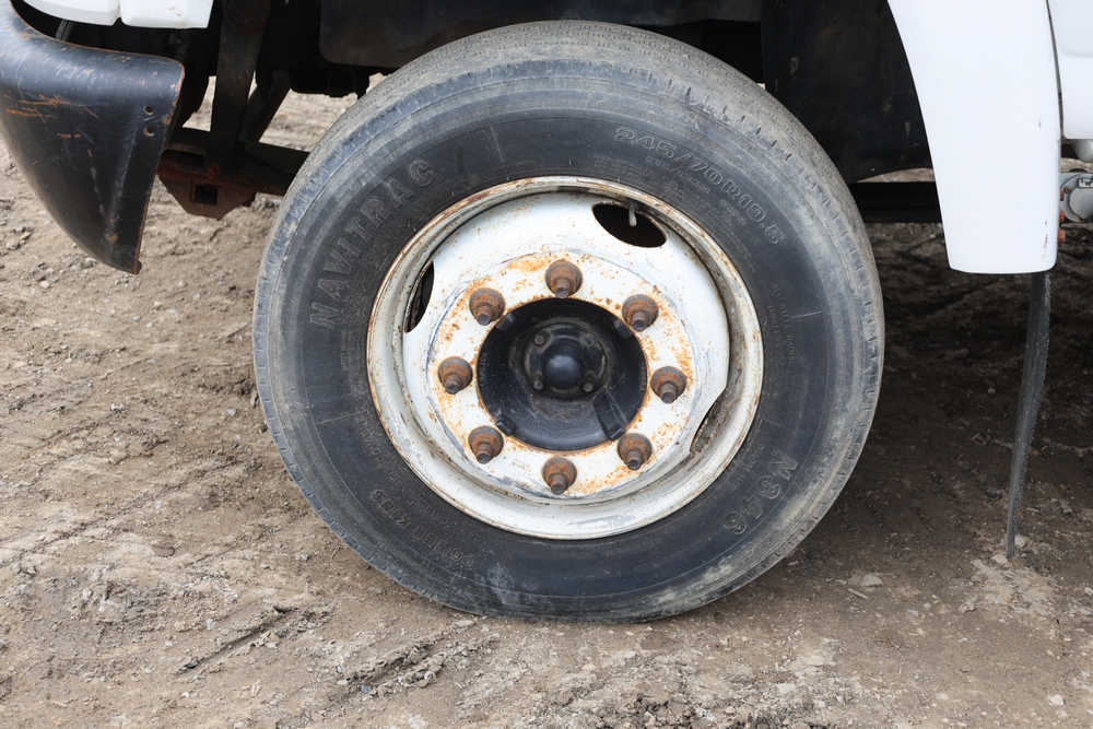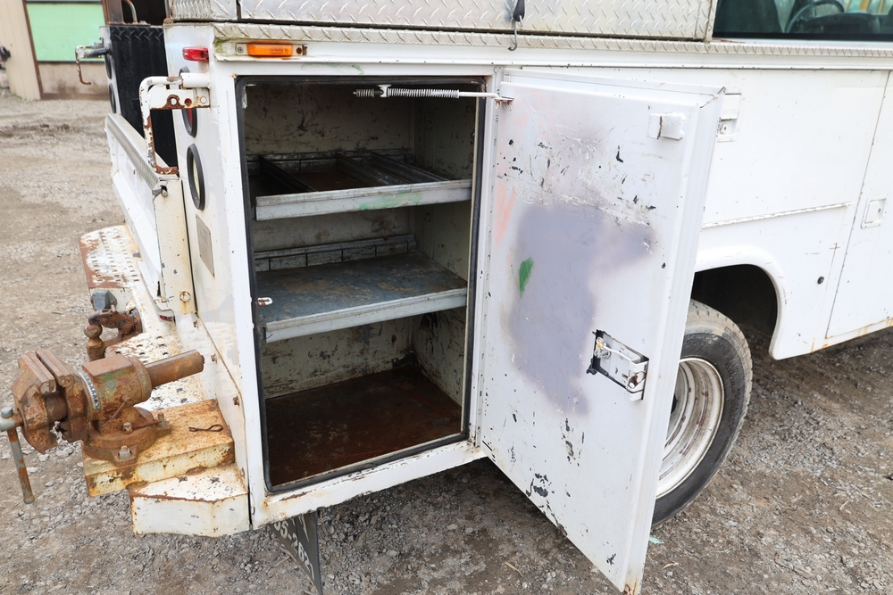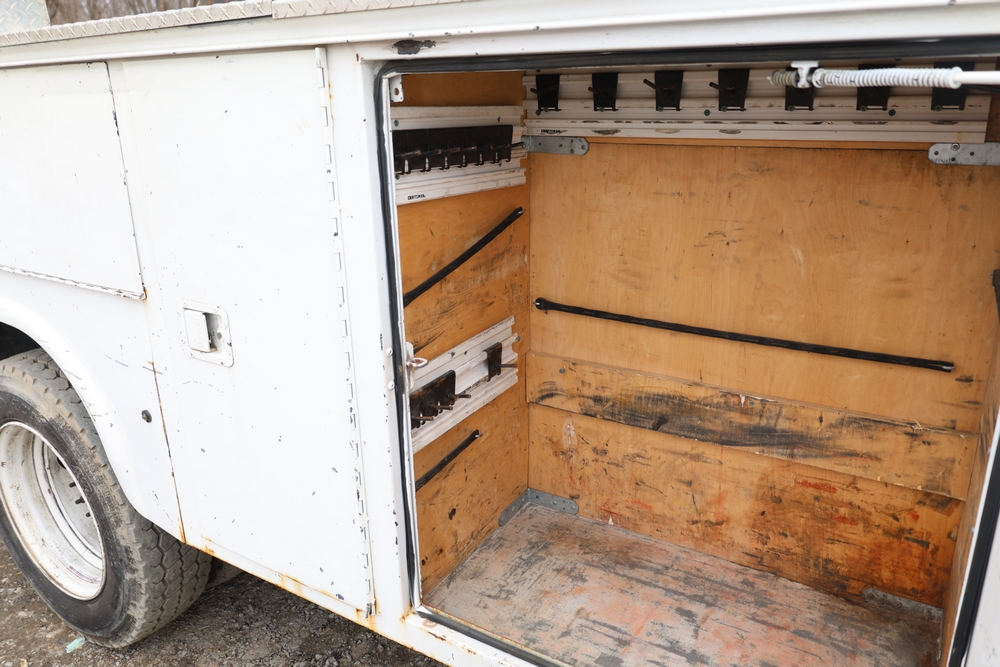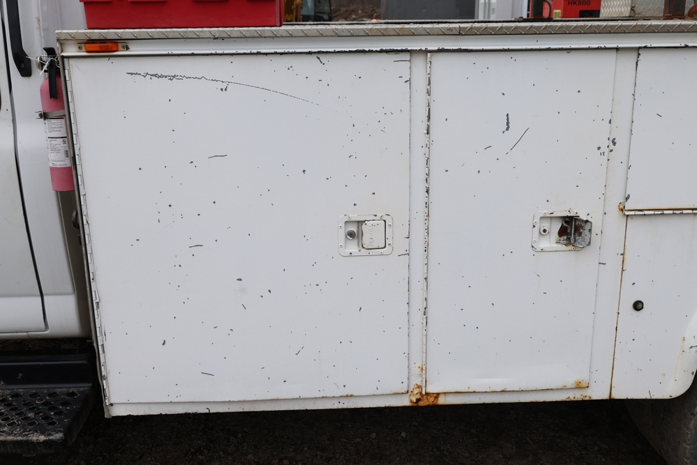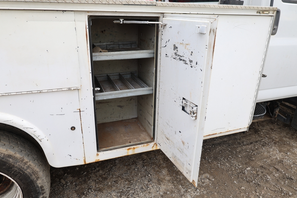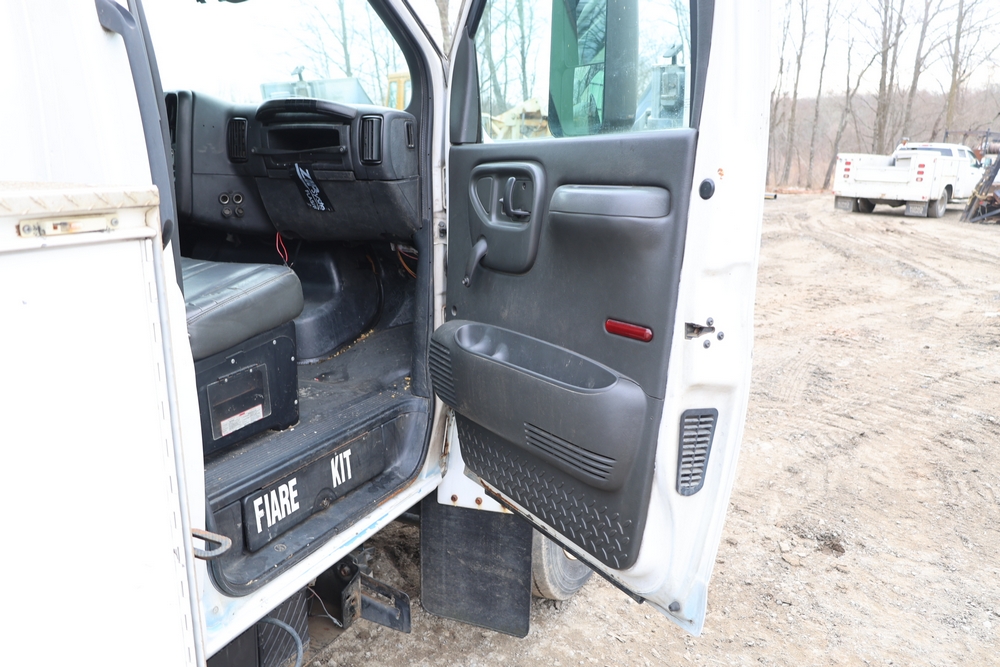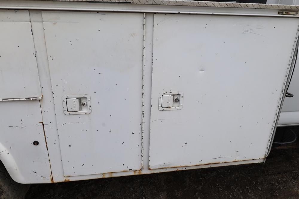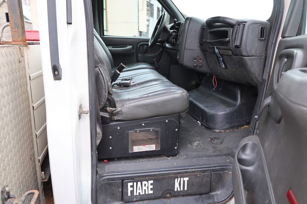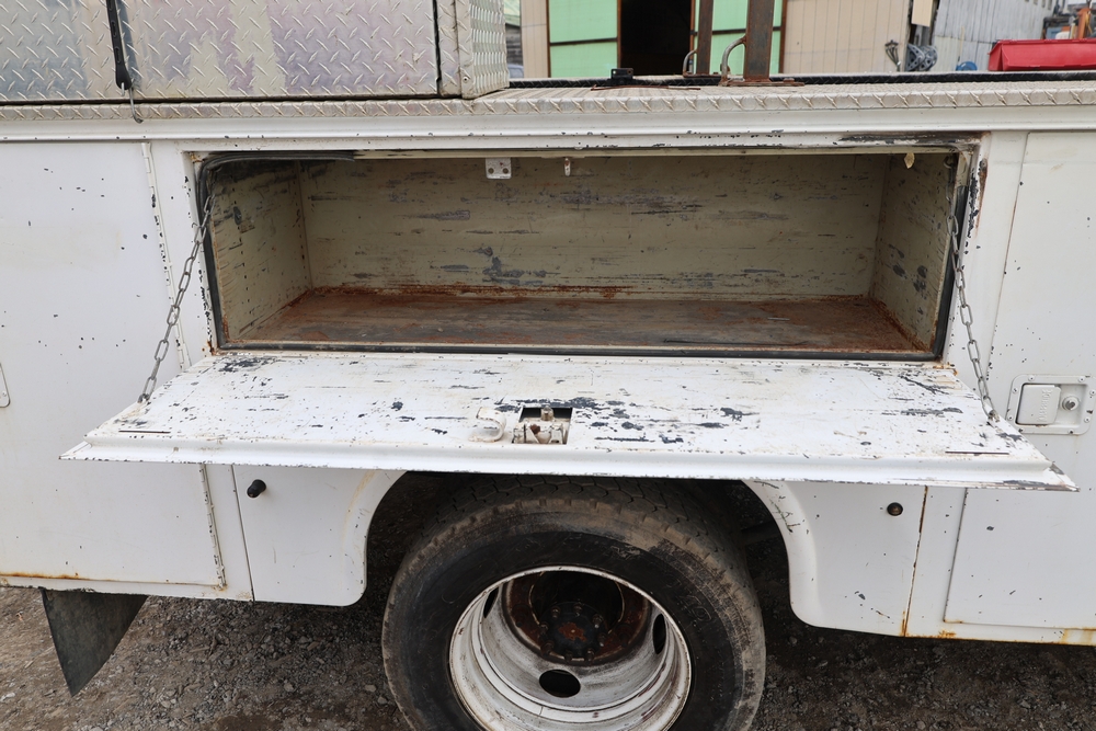 2006 GMC C5C042 service truck with a 6.6L V8 TURBO DIESEL engine. VIN: 1GDG5C1216F418943. Odometer reading: 104402. Body: chassis and cab. 4X2, service body, ladder rack, diamond plate toolbox, tow hitch receiver, Boss Industries hydraulic pump, AM/FM radio, trailer brake controller. Runs and drives. Title and key available.