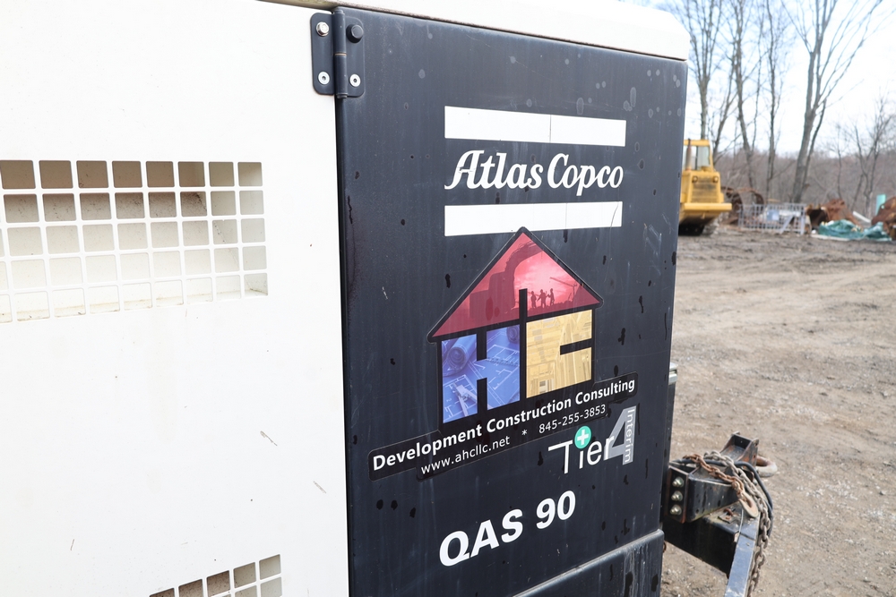 Atlas Copco 60Kw AC generator, model QAS 90 IT4 WEB trailer, product number 8972822890, serial number HOP102855, year 2015, 72 kW / 90 kVA, trailer mounted, tandem axle, hour meter reading 6044.0 hours. 110/220 or 3 phase, 400 Amp breakers, John Deere engine, and 250 gallon fuel capacity. Seller reports: Operational.