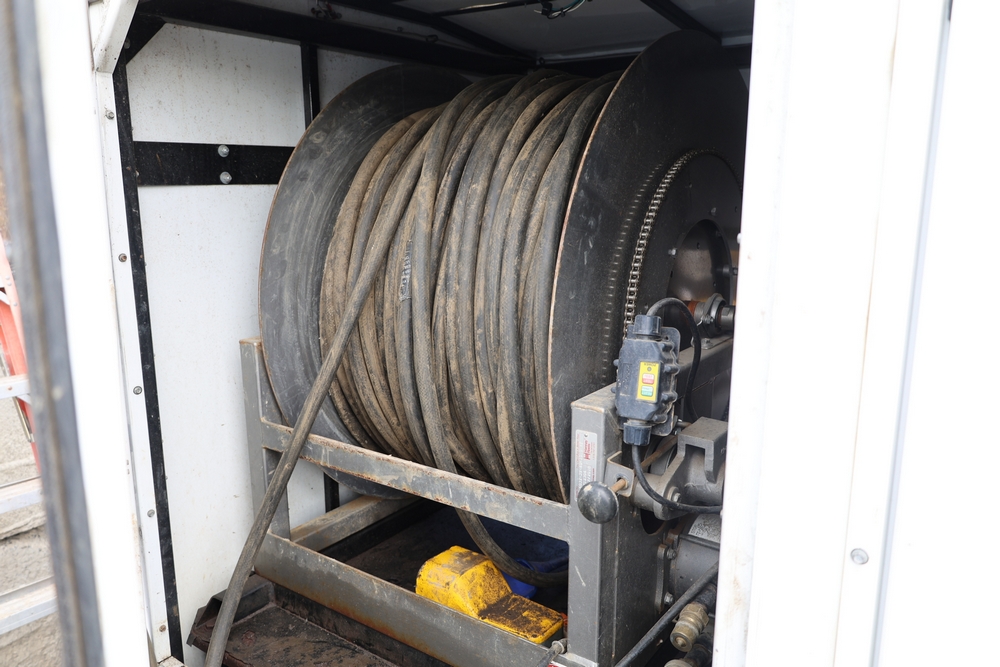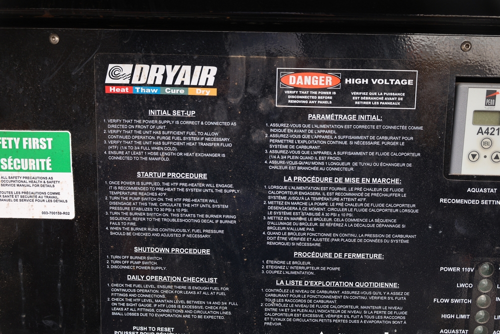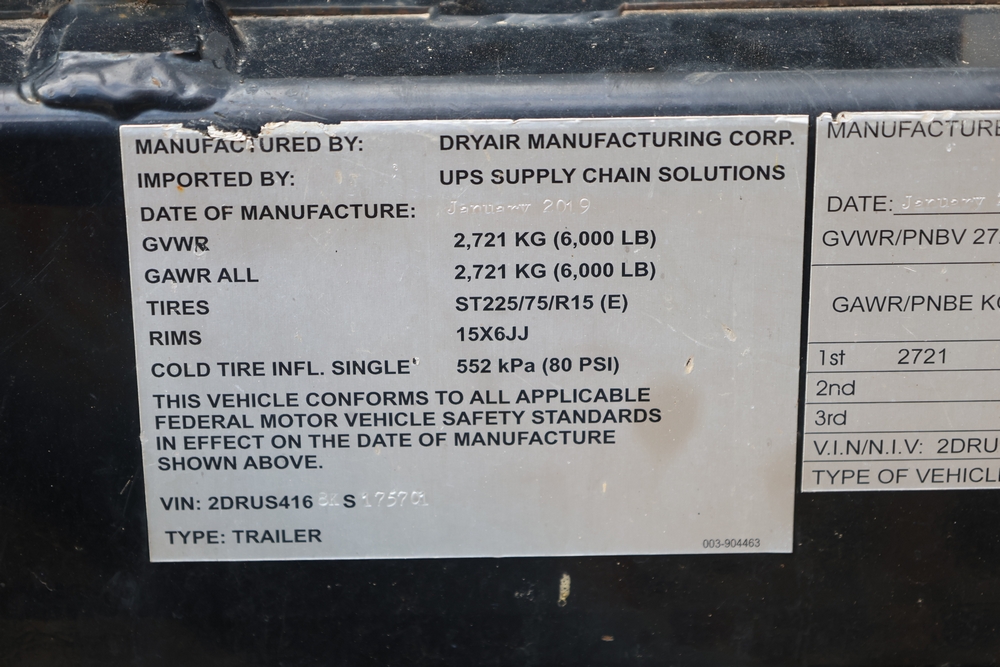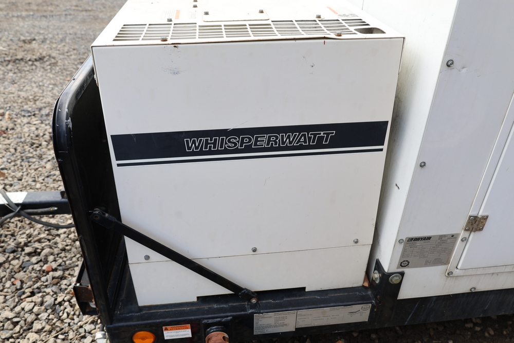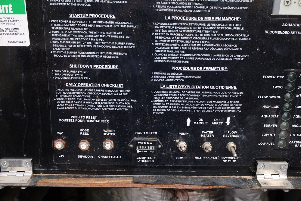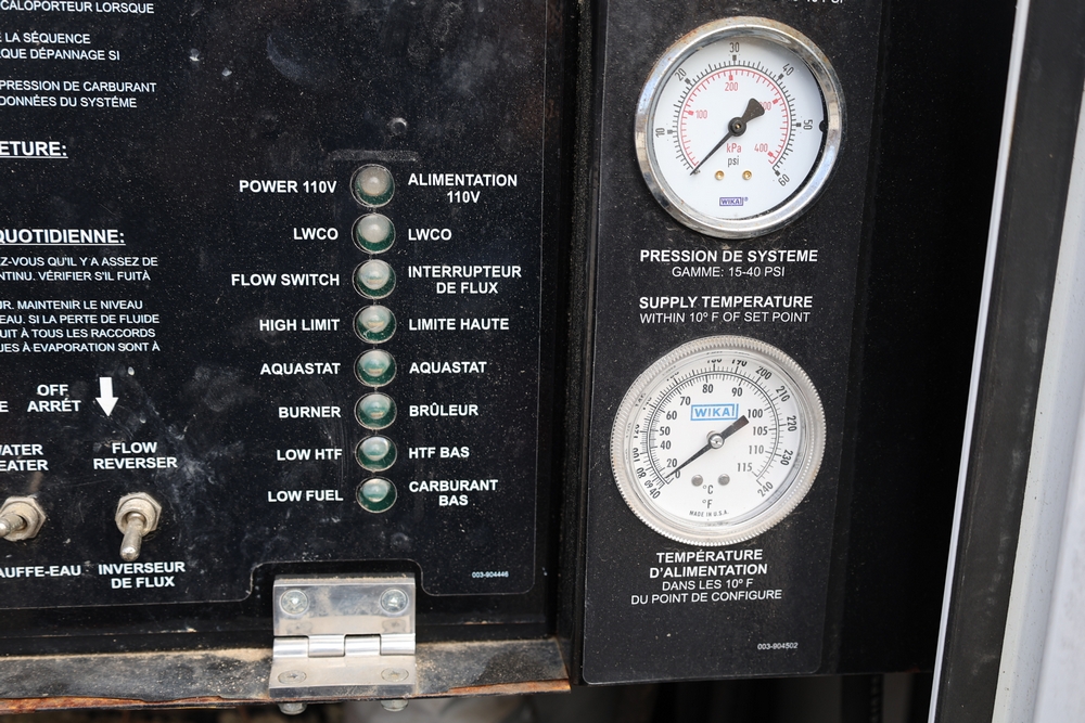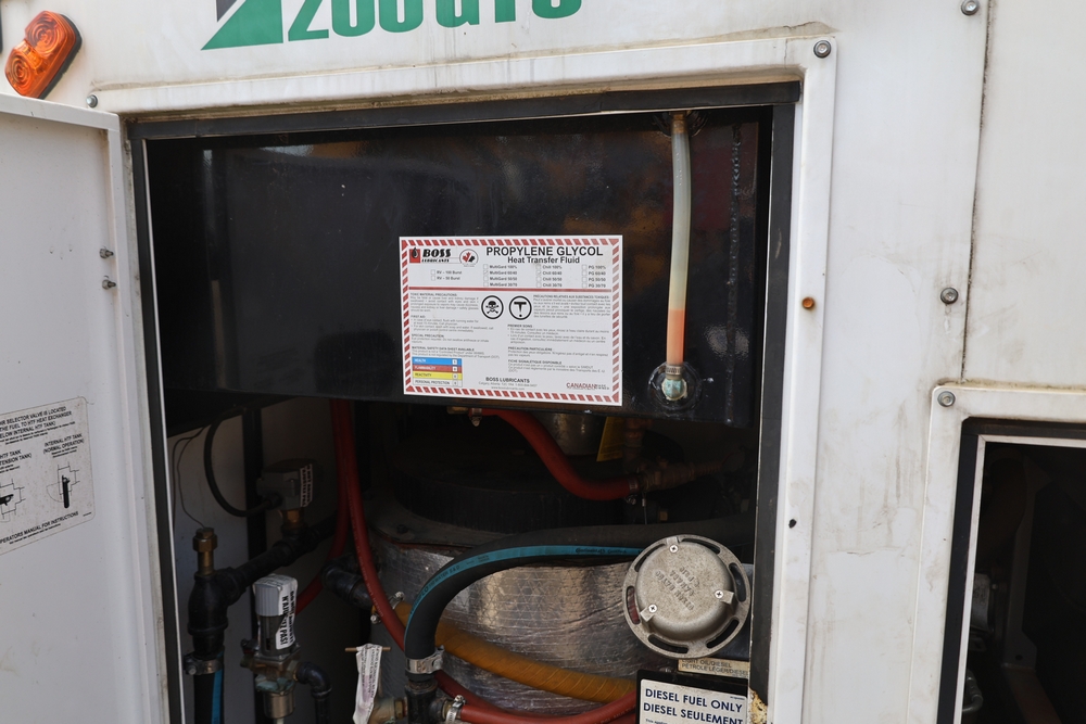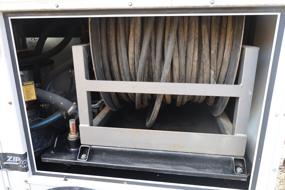 DryAir Greenthaw heat thaw unit, model 200-GTS, serial number 175701, date of manufacture January 2019, trailer mounted, VIN 2DRUS4163KS175701, GVWR 2721 kg (6000 lb.), single axle, equipped with Hannay hose reel model EP 6032-39-40-15.5 RT (serial 2712304), includes MultiQuip WhisperWatt diesel powered AC generator model DAC-7000SSA (serial 5764853), 6000 W, 120/240 V, 25 A, 60 Hz, single phase, Kubota diesel engine model Z482, hour meter reading 2368.1 hours on generator and 3961.4 hours on heat unit. Includes dual zones, 600 feet of hose per zone, reverse flow, will run on generator or outlet, produces up to 180 degree water, hot water heater fan blower heater and 100 gallon fuel capacity. Seller reports: Operational.