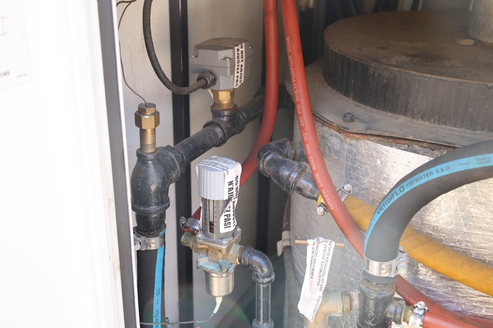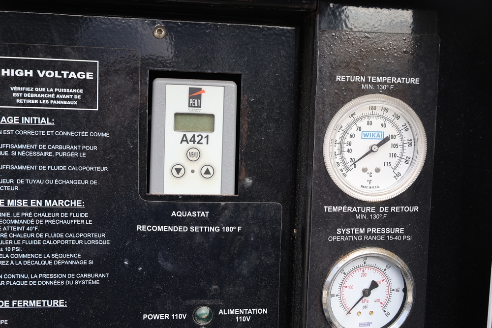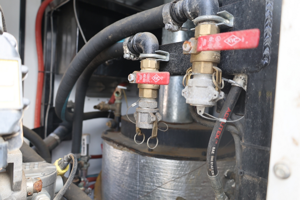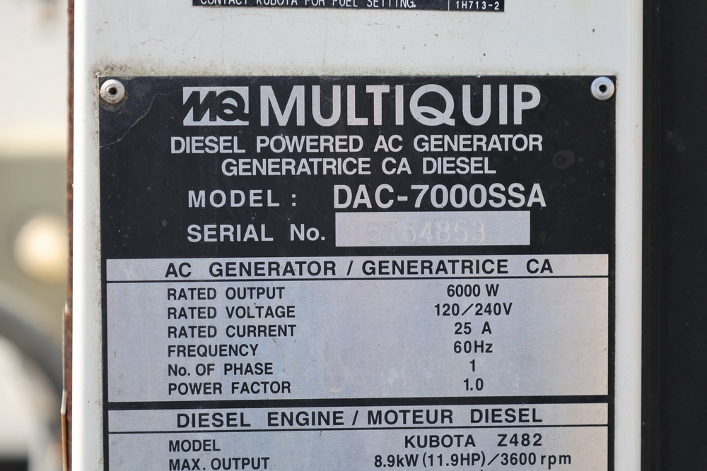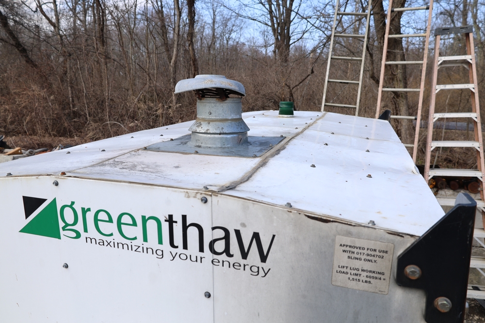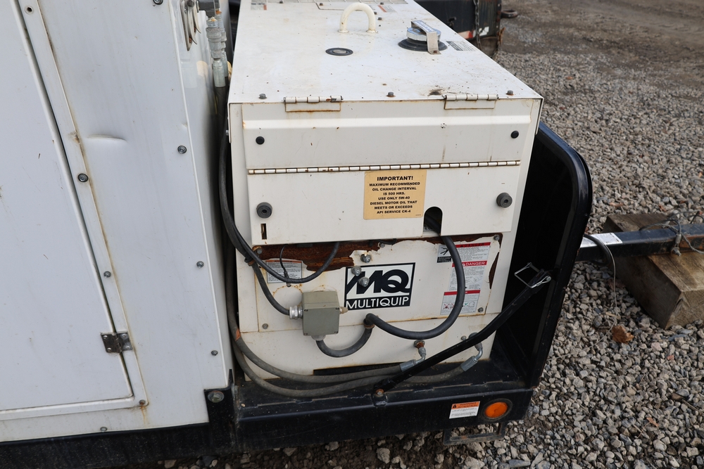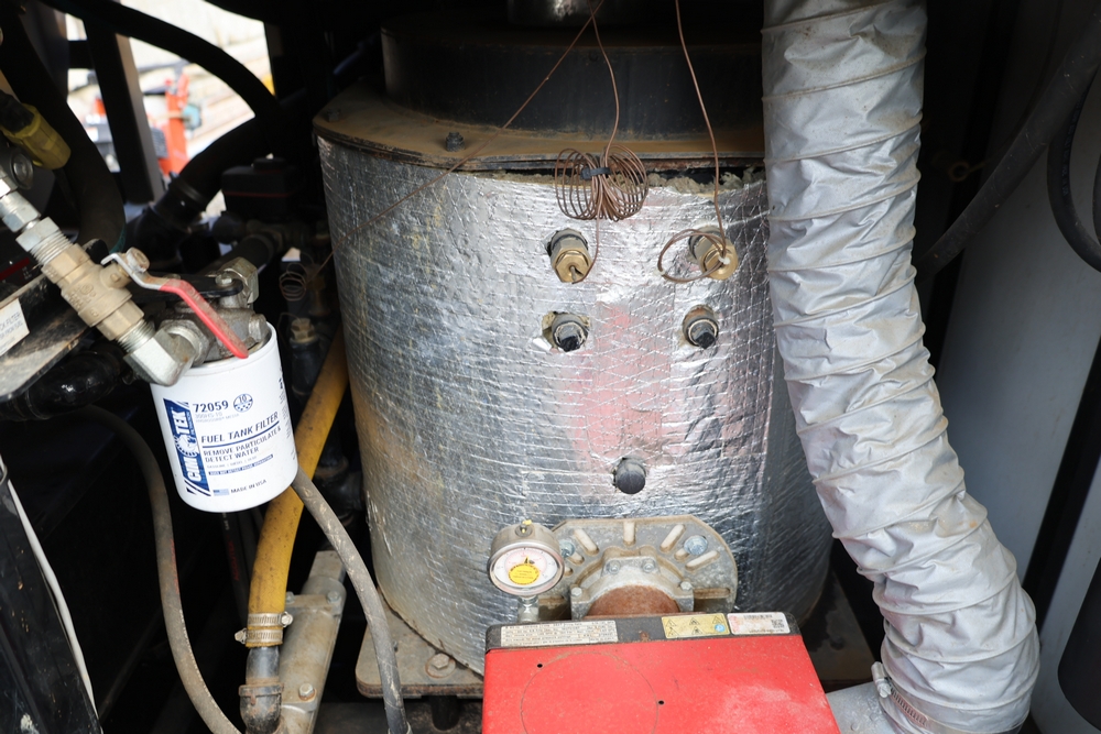DryAir Greenthaw heat thaw unit, model 200-GTS, serial number 175701, date of manufacture January 2019, trailer mounted, VIN 2DRUS4163KS175701, GVWR 2721 kg (6000 lb.), single axle, equipped with Hannay hose reel model EP 6032-39-40-15.5 RT (serial 2712304), includes MultiQuip WhisperWatt diesel powered AC generator model DAC-7000SSA (serial 5764853), 6000 W, 120/240 V, 25 A, 60 Hz, single phase, Kubota diesel engine model Z482, hour meter reading 2368.1 hours on generator and 3961.4 hours on heat unit. Includes dual zones, 600 feet of hose per zone, reverse flow, will run on generator or outlet, produces up to 180 degree water, hot water heater fan blower heater and 100 gallon fuel capacity. Seller reports: Operational.
