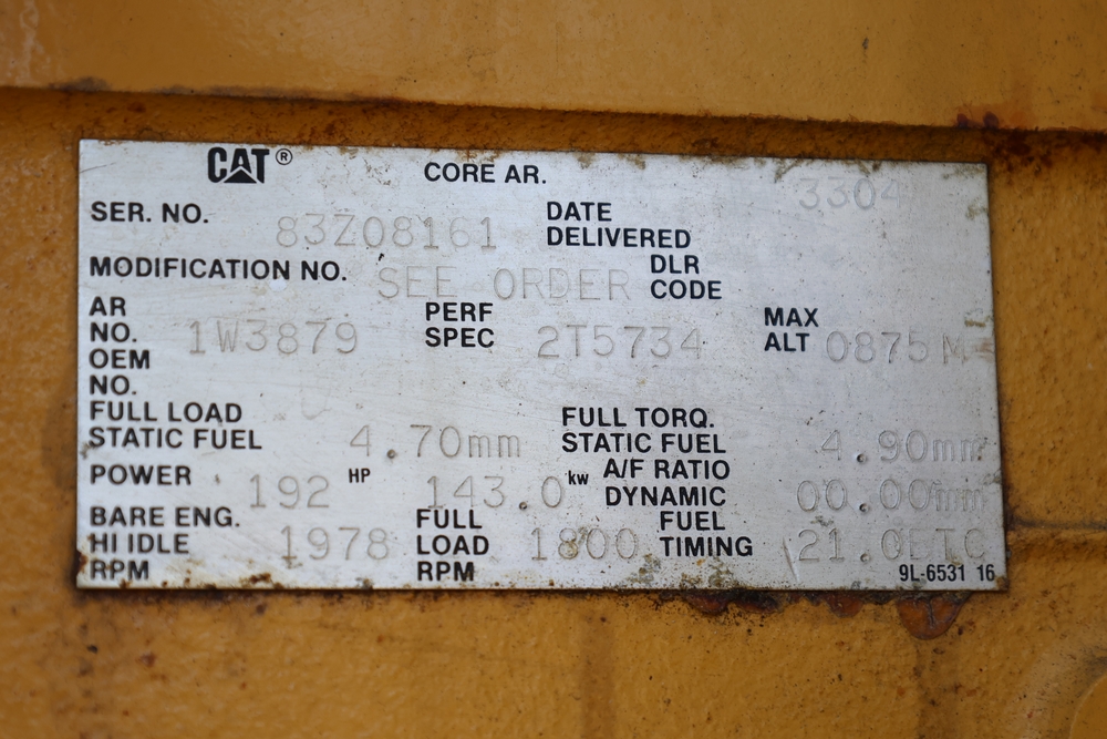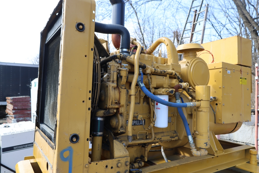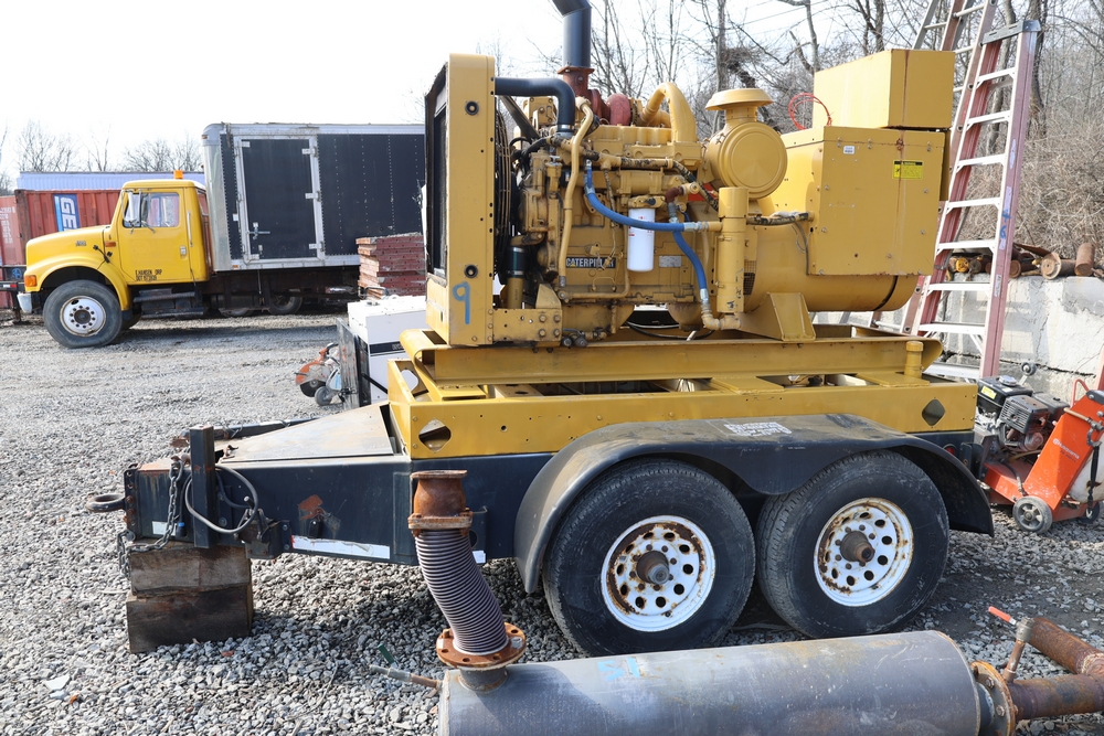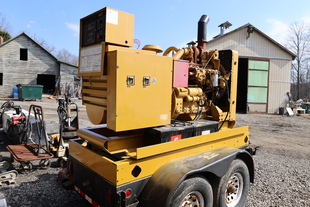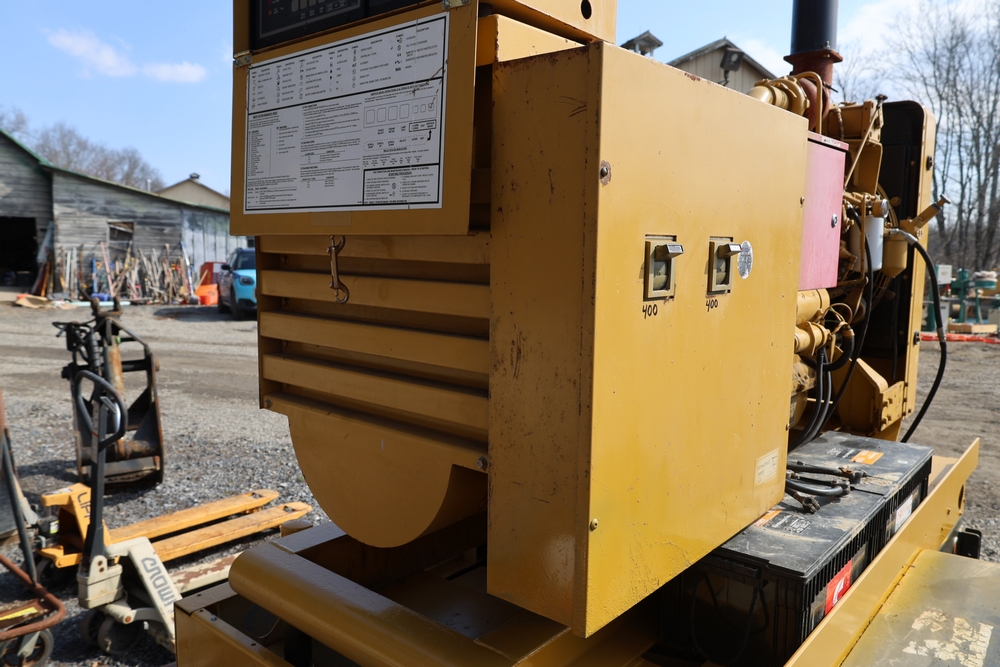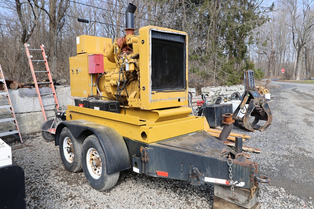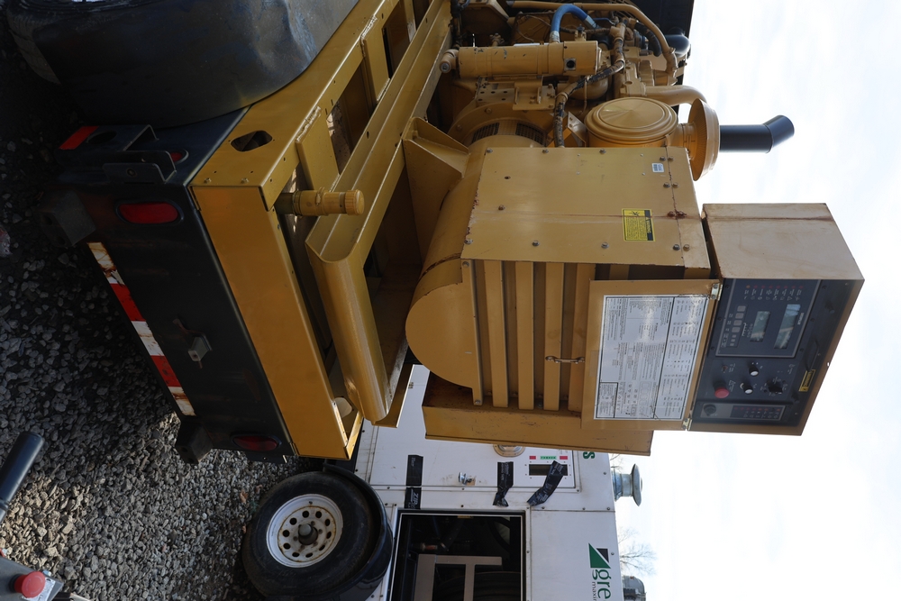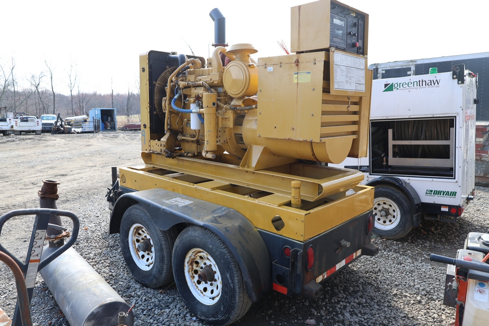 Caterpillar generator set, trailer mounted, Serial No. 83Z08161, 192 HP, 143.0 kW, hour meter reads 962, International Supply Co. tag dated 1-94, dual axle trailer, includes silencer exhaust, dual 400 amp breakers for 110/220 or 3 phase per breaker. Seller reports: Operational.