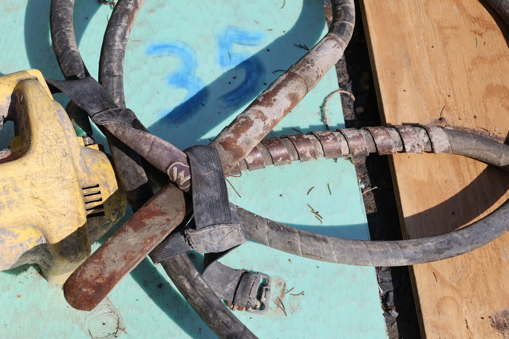 Items include 2012 Chevrolet Silverado 3500HD work truck crew cab; 2006 GMC C5C042 service truck; Ingersoll-Rand VR-90B rough terrain forklift; DryAir Greenthaw heat thaw unit; Grizzly G0671 4 HP dust collector; Wacker Neuson WP1550 plate compactor; Woodmaster W-718 planer; Shop Fox W1674 shaper; scaffold frames; submersible pumps; lay flat hoses; Tapco aluminum siding brake; concrete blankets; Paslode IM250A Li 16 gauge cordless angled finish nailer; Smith cutting torch with hoses & regulators; Propane tank with hose & burner stand; Hougen HMD904 magnetic drill; traffic cones; pallet jacks; Better Built fluid transfer tank; Neptune water meter assembly & more. Items are located in New Paltz, NY.