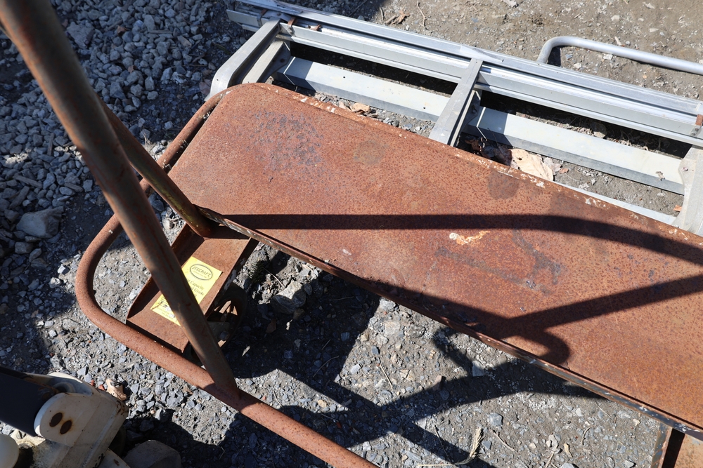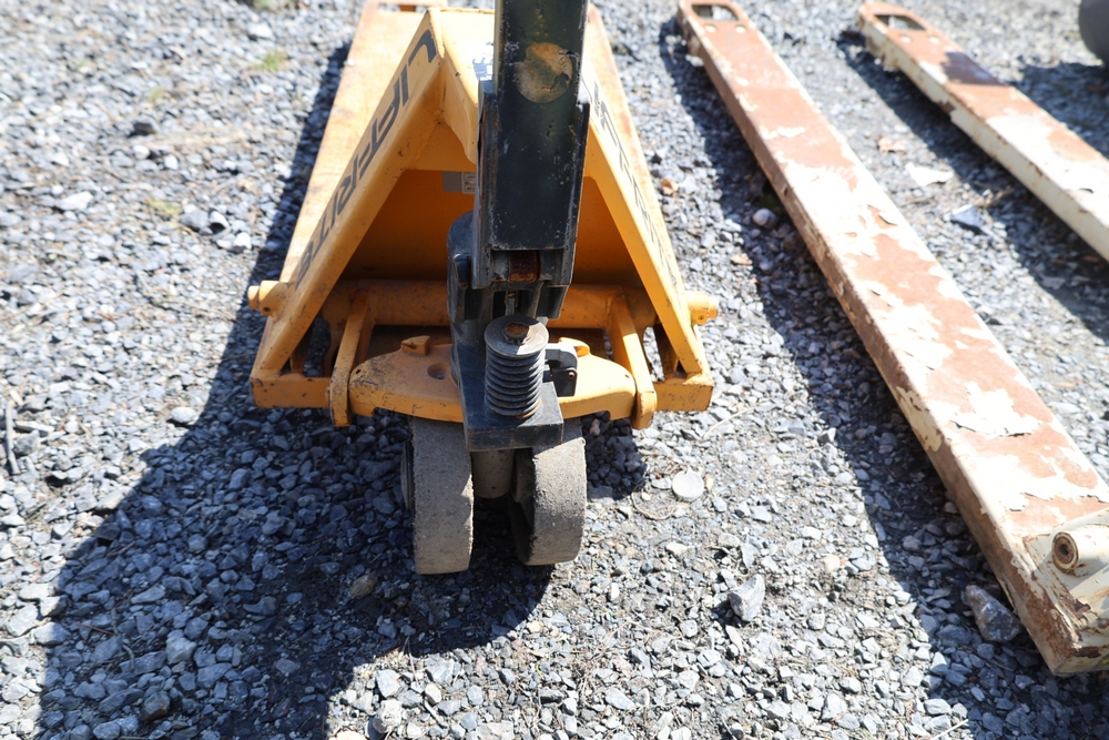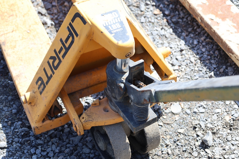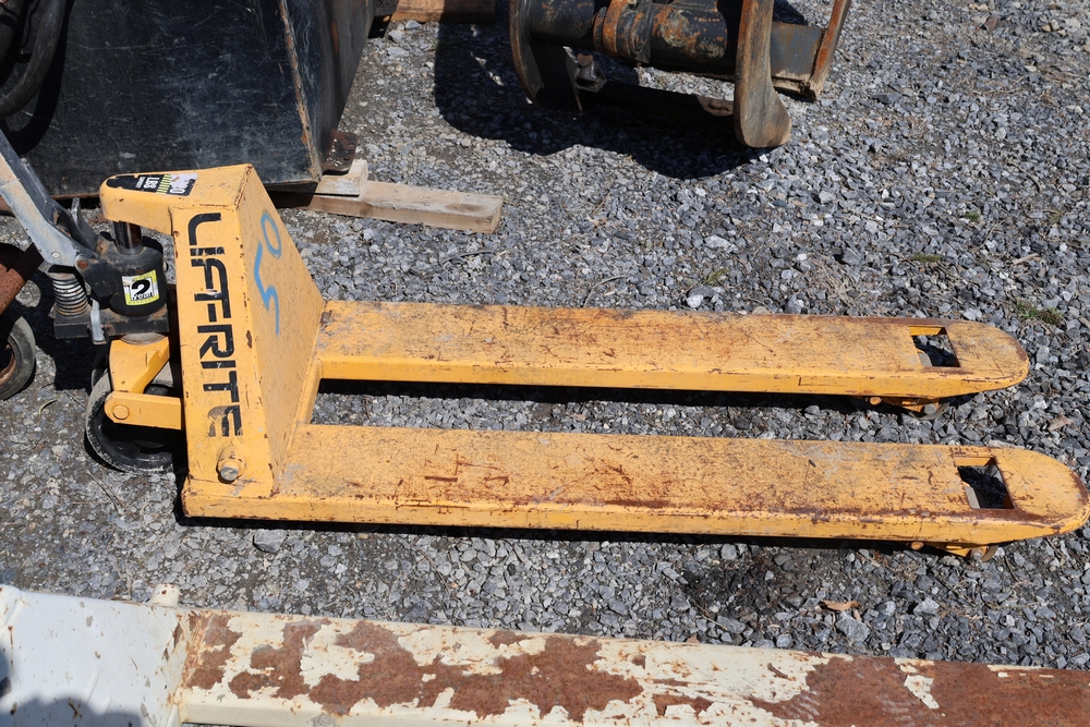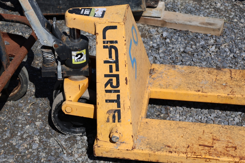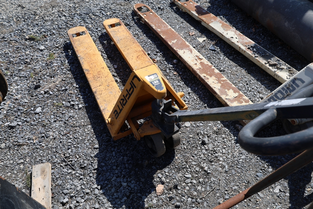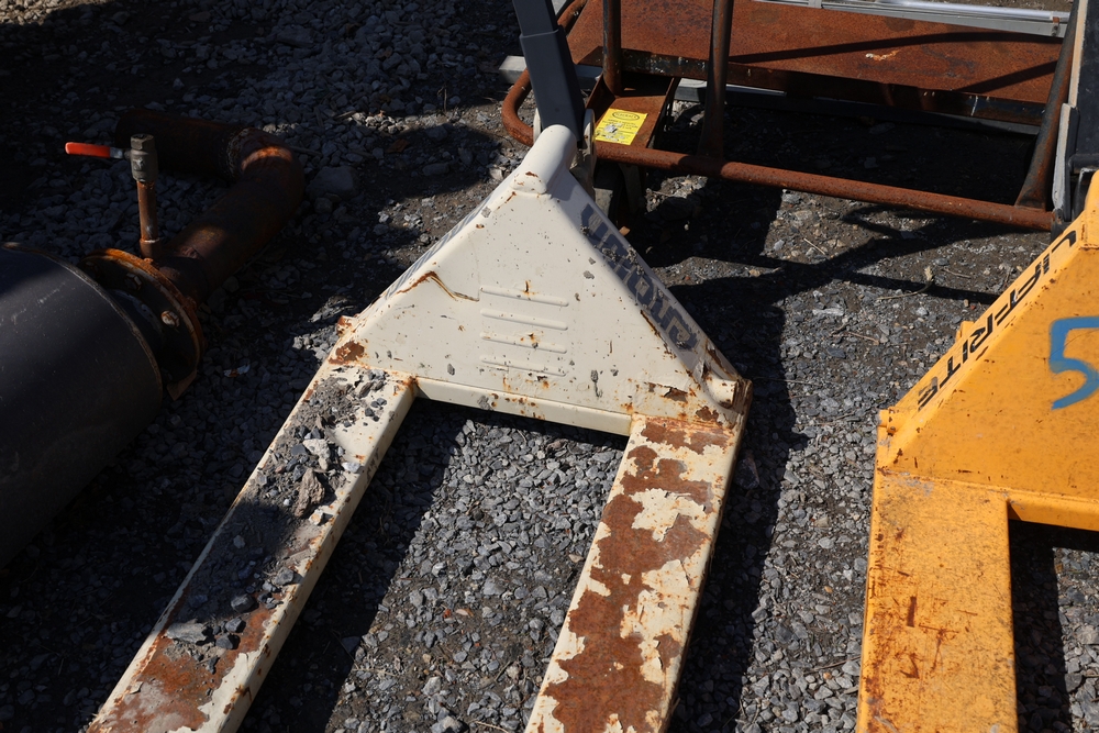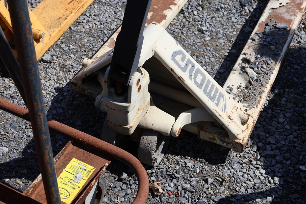 Two pallet jacks including Crown and Liftrite, and Jescraft drywall cart, 3000 lb. capacity.