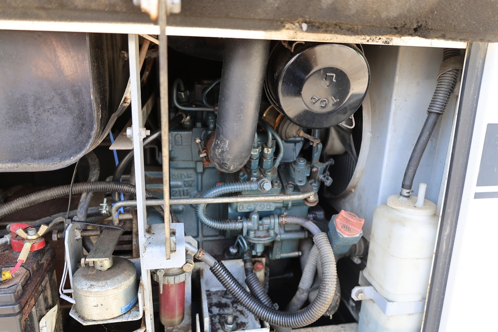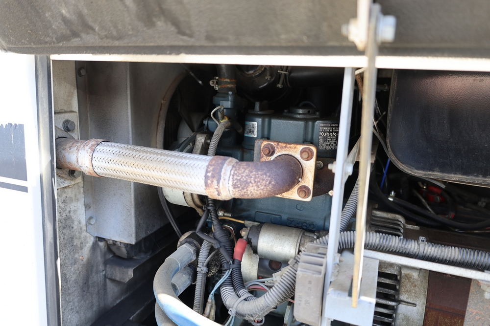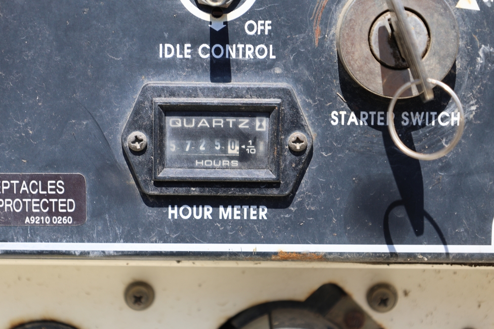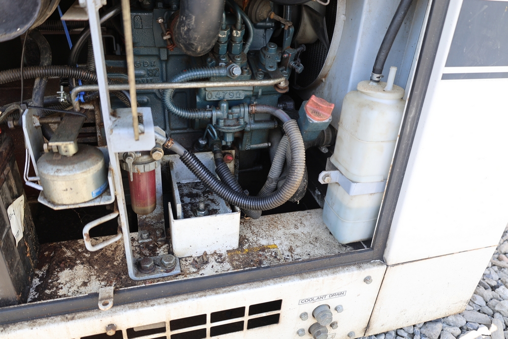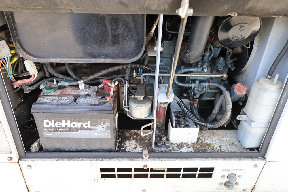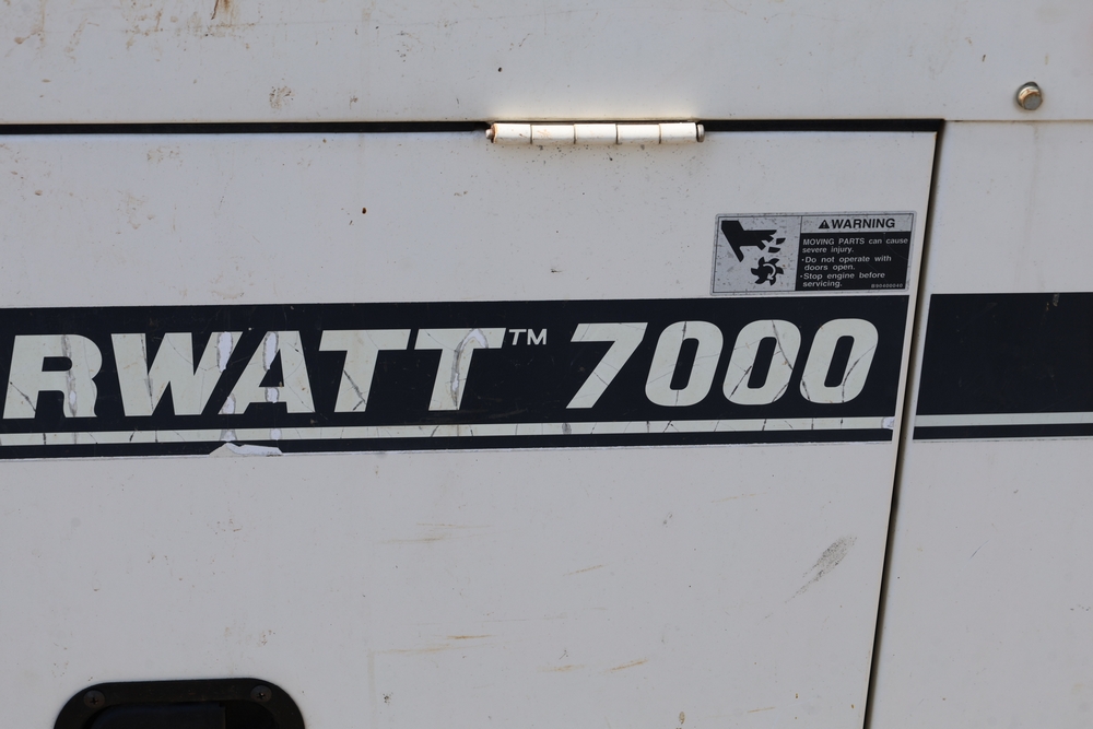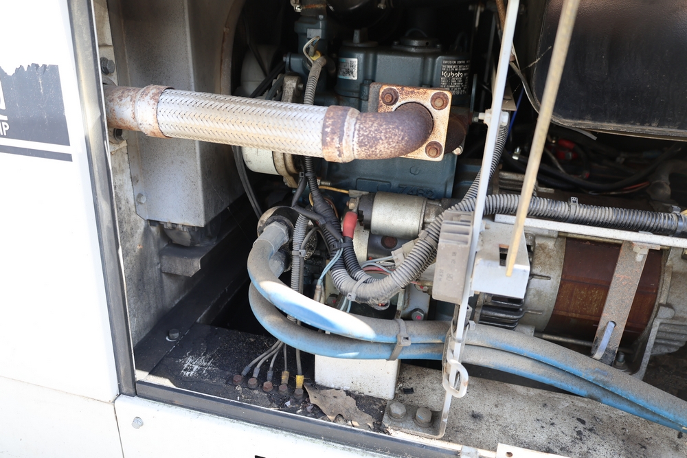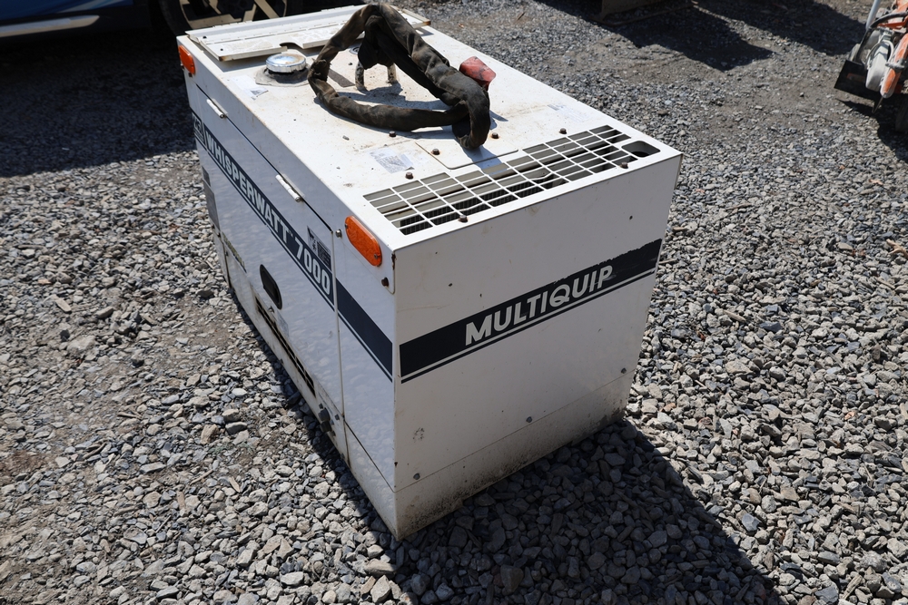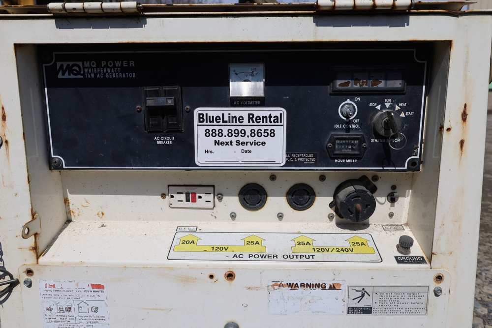 Multiquip Whisperwatt 7000 diesel powered generator, model DA-7000SSA, Kubota Z482 engine, 120/240V, 7000W max output, hour meter reads 5725 hours.