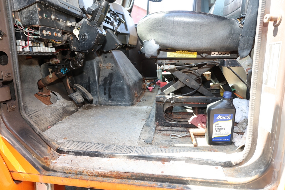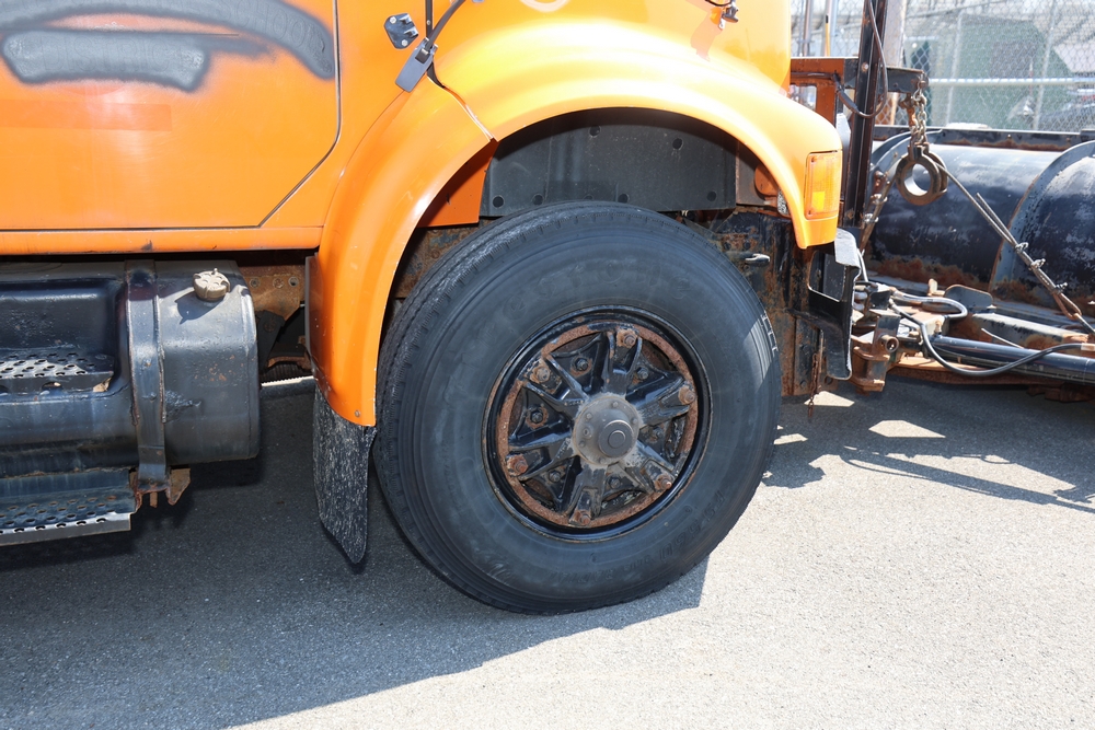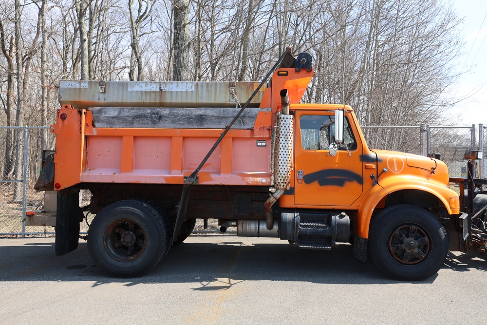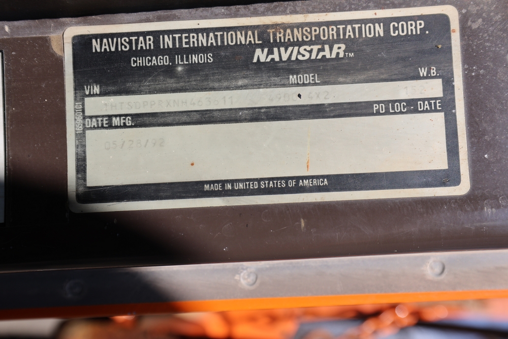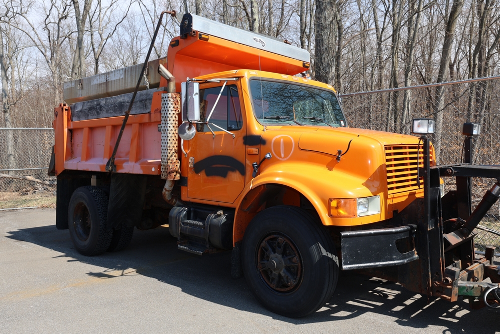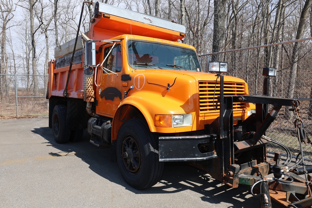 1992 International 4900 Dump Truck. VIN: 1HTSDPPRXNH463611. Engine: 7.6L I6 DI Diesel. Asset #: F251. Odometer reading: 174859. Seller reports: Ran when parked, must be towed. Salt spreader, front plow, McClain Galion dump body. Title & key available.