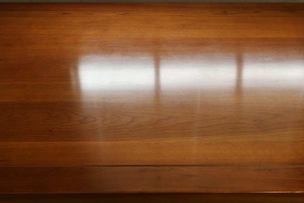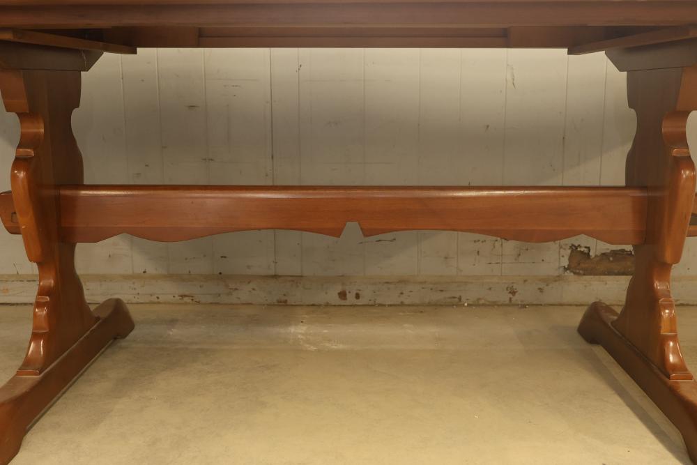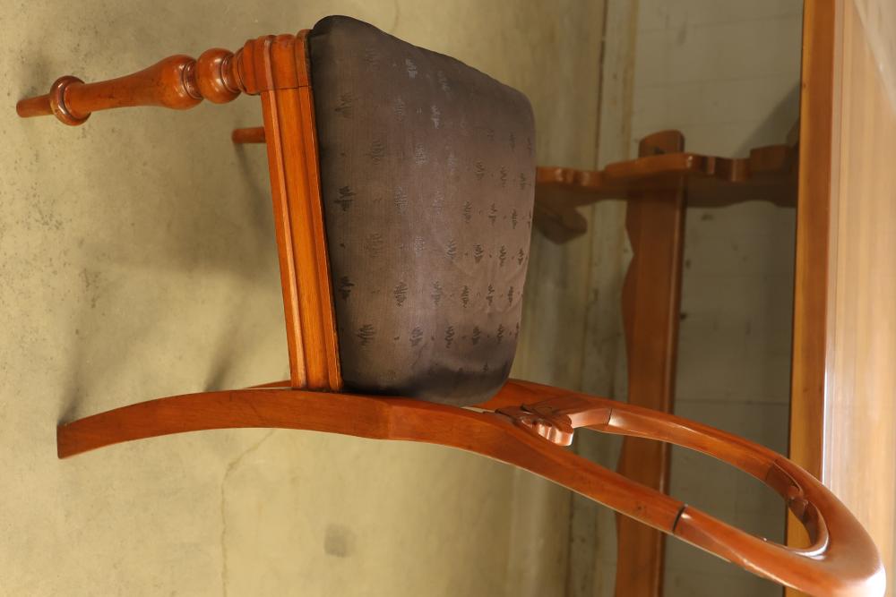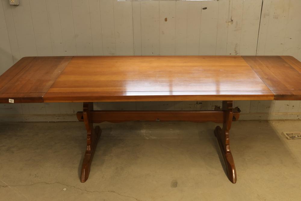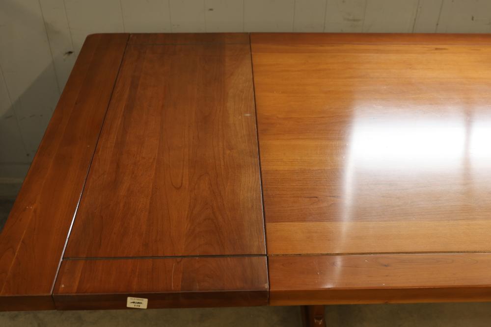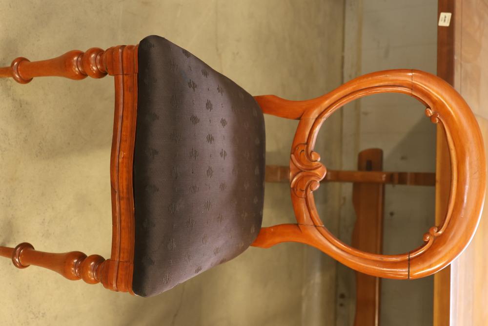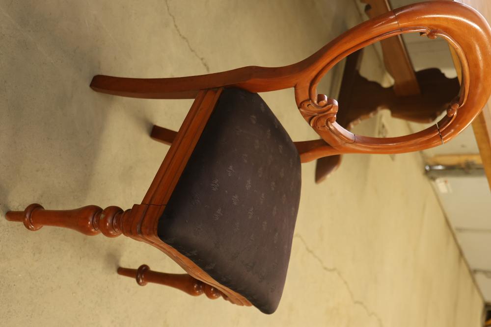 Wooden Expandable Dining Table with Two Removable Leaves and 3 Victorian style Balloon-Back Mahogany Finish Dining Chairs with Cushions. Table measures approximately 30.25 inches high, 100 inches wide, and 38 inches deep. Chairs feature balloon backs with Victorian-style design, cushioned seats, and a mahogany finish. Chairs measure approximately 18 inches wide. Pickup only.
