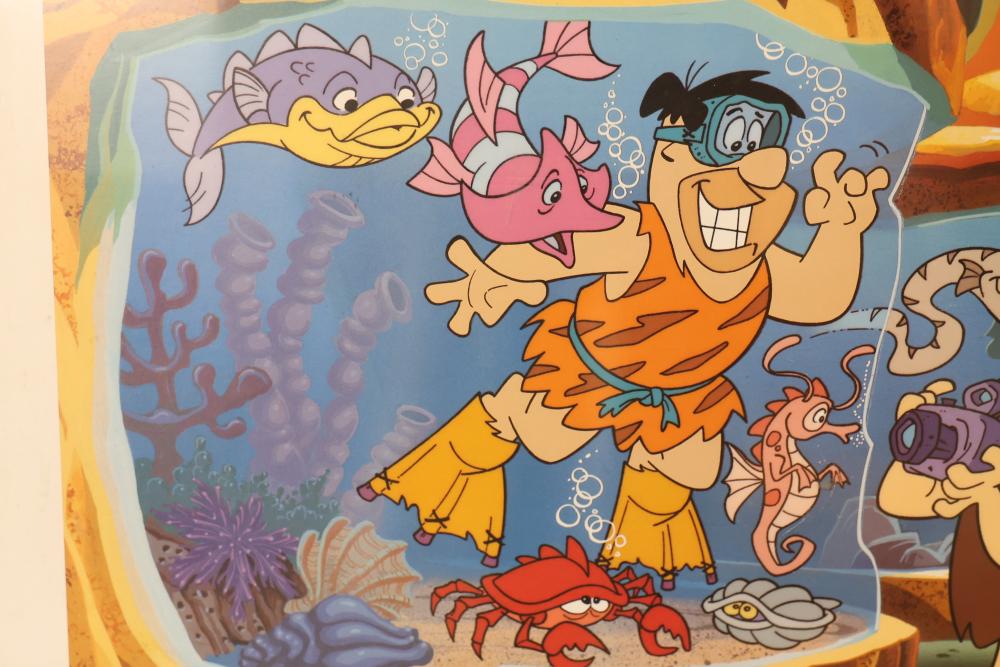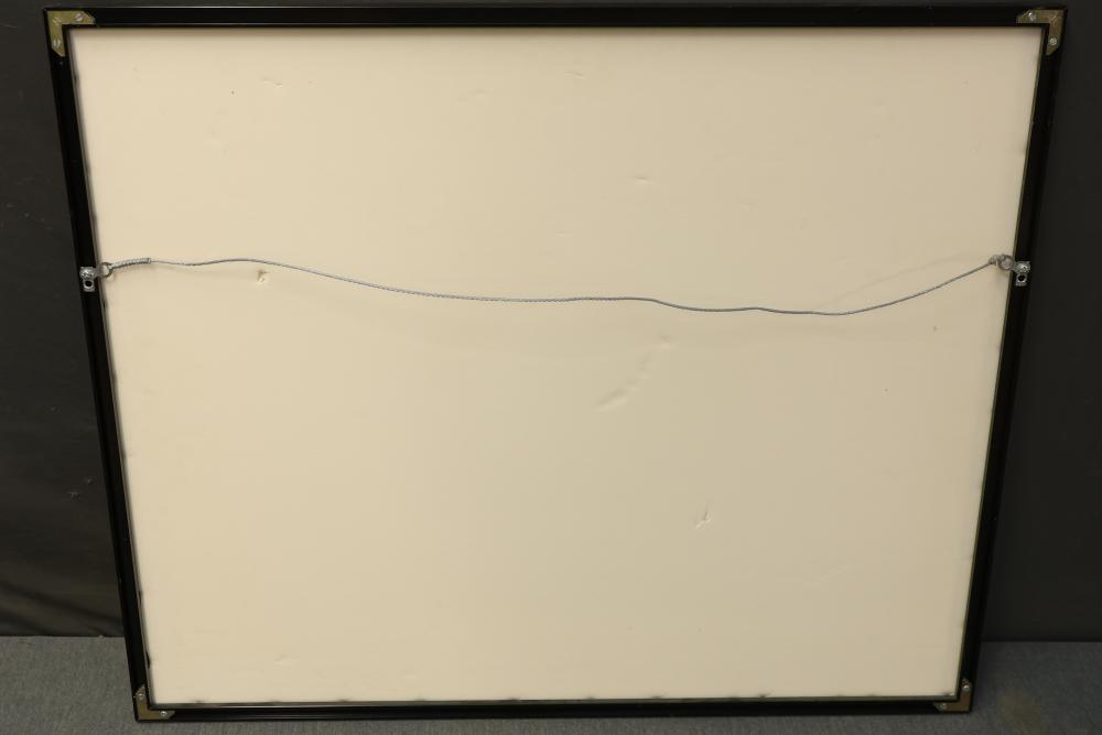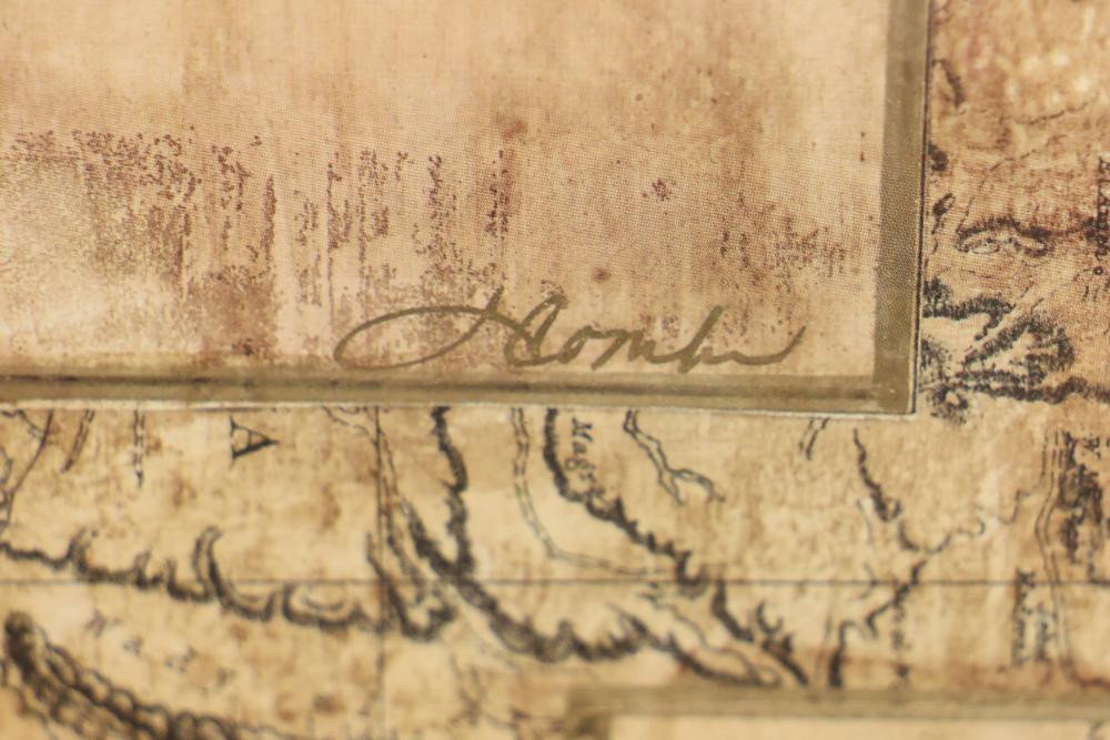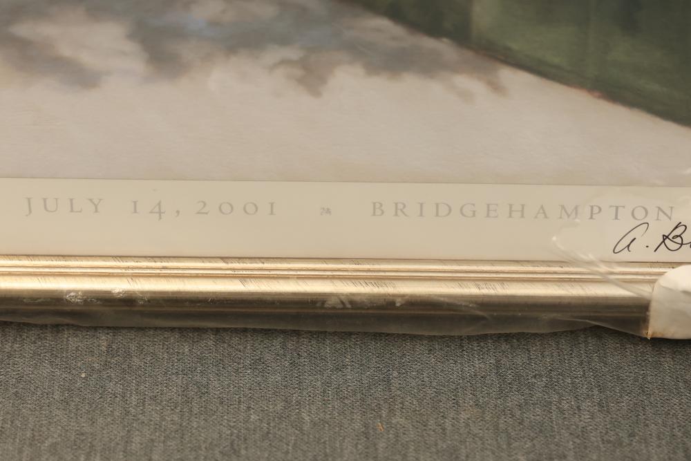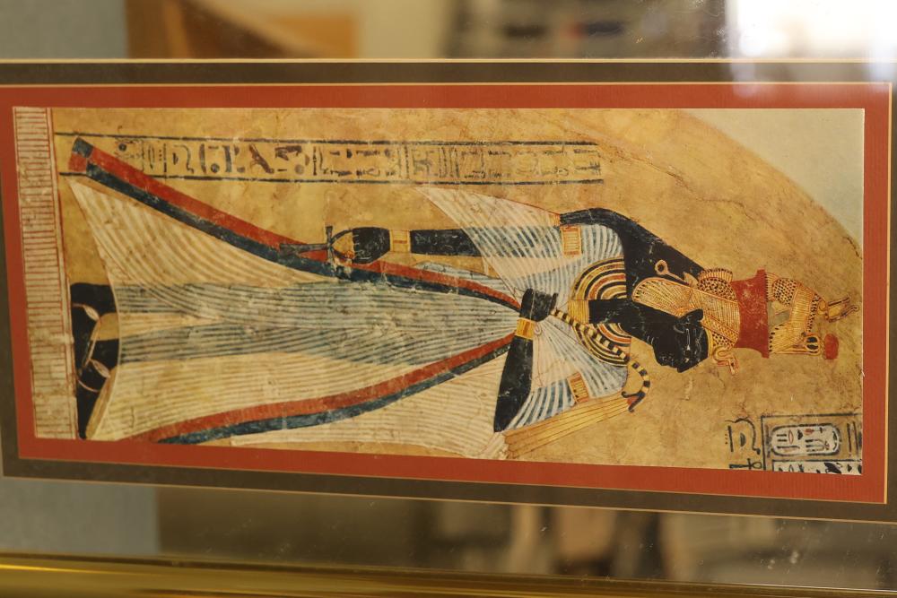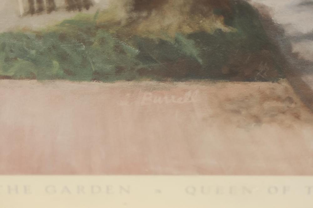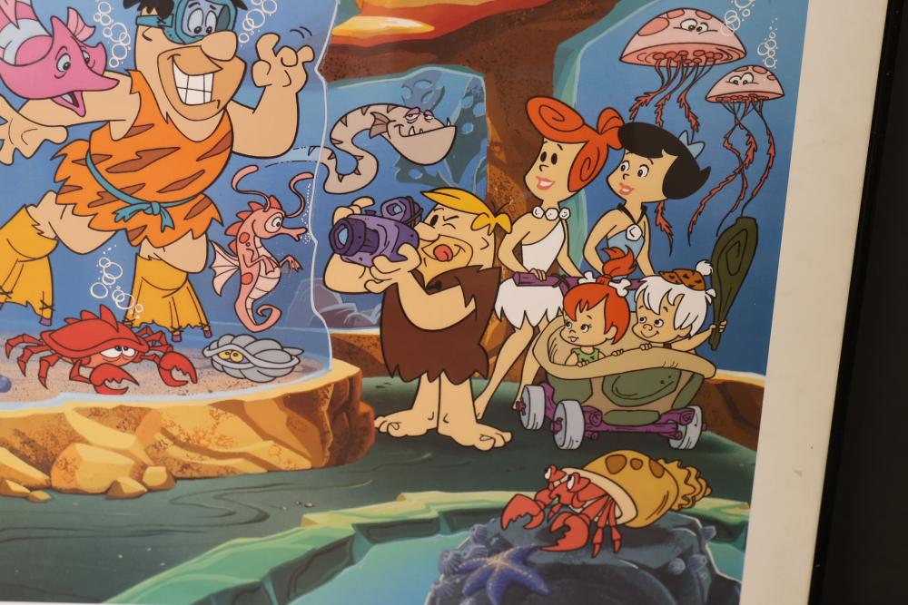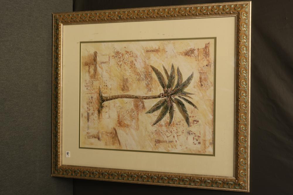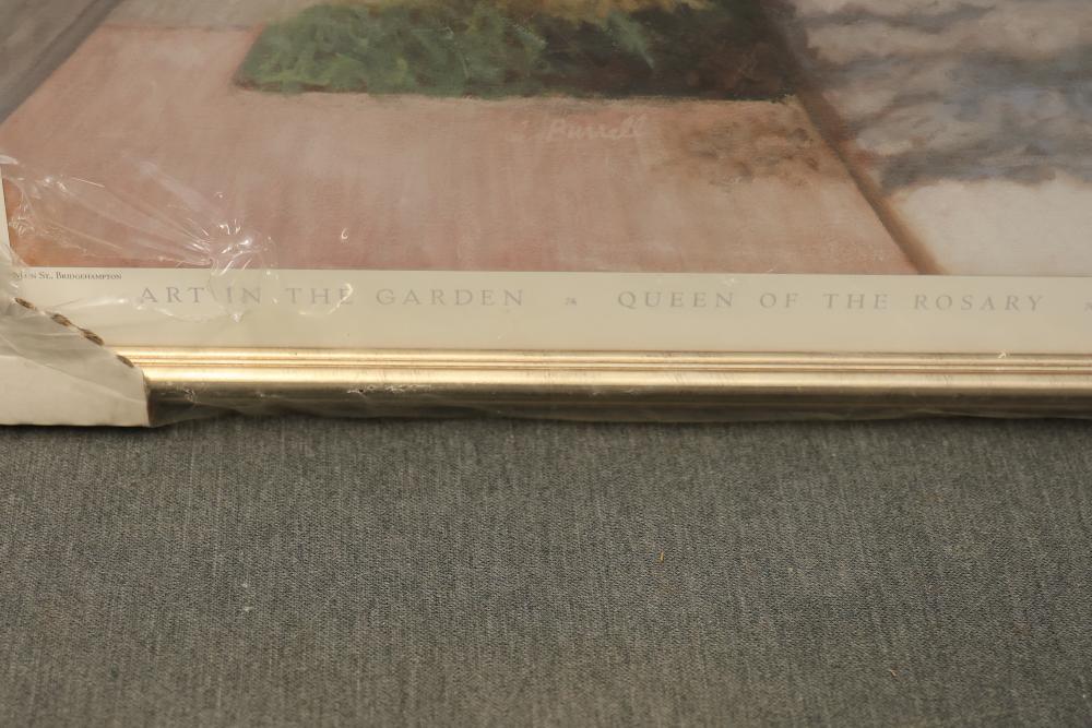 Artwork including 7 prints and 2 mirrors. Pieces include unsigned print of a palm tree, "Quaubcojolli Terenty" print by J Combs(?), Flintstones print by Animation Art, and print of "Main St., Bridgehampton" by Allison Burrell (signature in artwork). Rectangular mirror with golden frame and print of Queen Nefertari of Egypt measures approximately 28.5 inches long and 16.5 inches wide. Oval mirror with wooden frame measures approximately 29.5 inches long and 21.5 inches wide. Artwork piece sizes range from approximately 29.5 inches long by 25.5 inches wide to approximately 15.5 inches long by 15.5 inches wide. Pickup only.