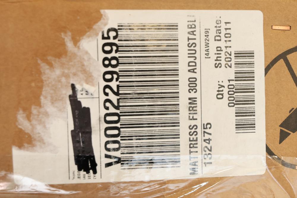 Mattress Firm 300 Adjustable Mattress Base. Box measures 84 inches long, 60 inches wide, and 5.5 inches deep. Box was opened for photography purposes. Pickup only.