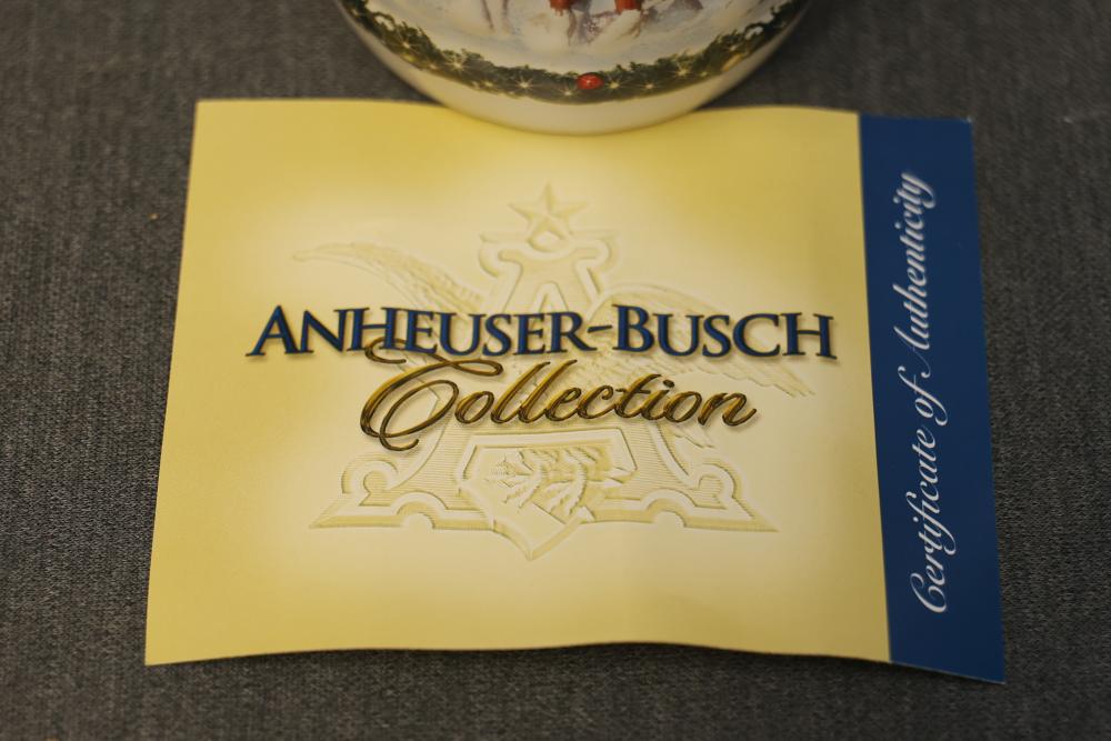 43 Beer Steins With Budweiser, Nascar, And Germanic Designs. Includes 35 unboxed beer steins and 8 new-in-box steins (boxes removed for photography). Features Anheuser Busch steins, Budweiser holiday and anniversary pieces, Nascar-themed commemorative steins, and Germanic-designed steins with phrases. Pickup only.