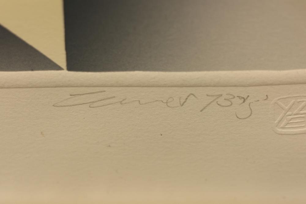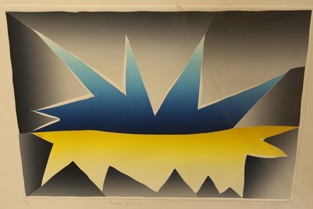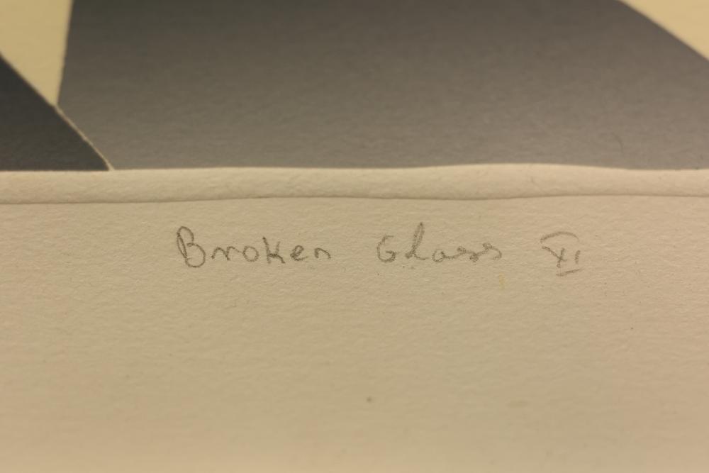 "Broken Glass" framed print signed by Zerner, marked with "A/P" in the lower left and signature in the bottom right. Measures approximately 30 inches long and 22 inches wide. Pickup only.