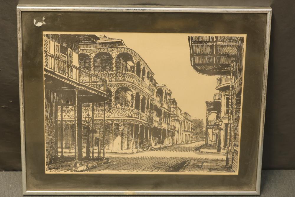 12 artwork pieces by different artists in varied mediums, including a framed print of "Acrobat" by Man Ray, watercolors such as "Frances P. Mesquita 1905" by Allen Hawkes and "Thistles" by Jane McConnaughey Boling, and "Double Waterfall," an oil on board signed as Lipman. Pieces range in size from approximately 36.25 inches long x 24.25 inches wide to approximately 14.5 inches long x 12.5 inches wide. Pickup only.