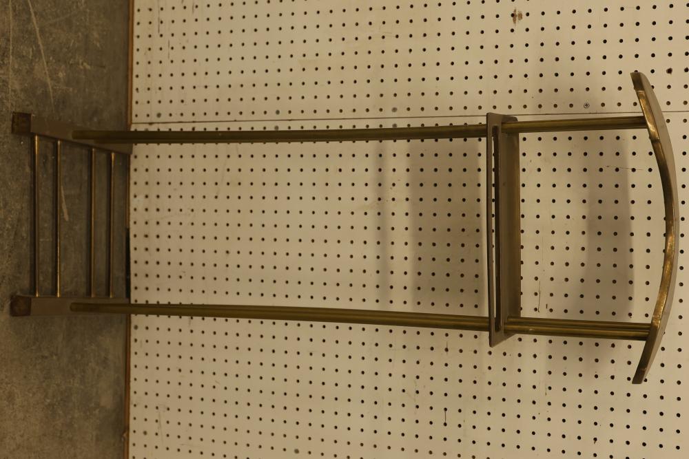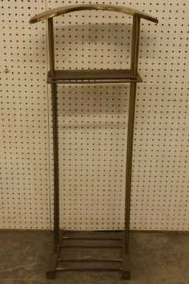 Modern Bronze-Plated Coat Stand Clothes Rack. Measures approximately 40 inches high, 17.5 inches wide, and 11.5 inches deep. Features a sturdy, decorative design ideal for organizing clothing items. Pickup only.
